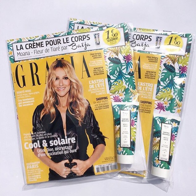 Nouveau bon plan magazine (l’été en général ça me manque pas) ! Le Grazia nous gâte toujours un peu plus avec cette fois la crème pour le corps Moana de la marque Baïja. Elle coute normalement 13,90€ mais vous pourrez l’achetez avec le Grazia du 17 juin 3016 pour 1,90€ seulement en plus du prix du magazine (soit 3,70€ au total). Non seulement le packaging de cette crème Baïja est canon avec ses feuilles de palmier mais en plus elle sent la fleur de tiaré, alors pourquoi se priver ? Allez, on file au kiosque avant la rupture de stock !