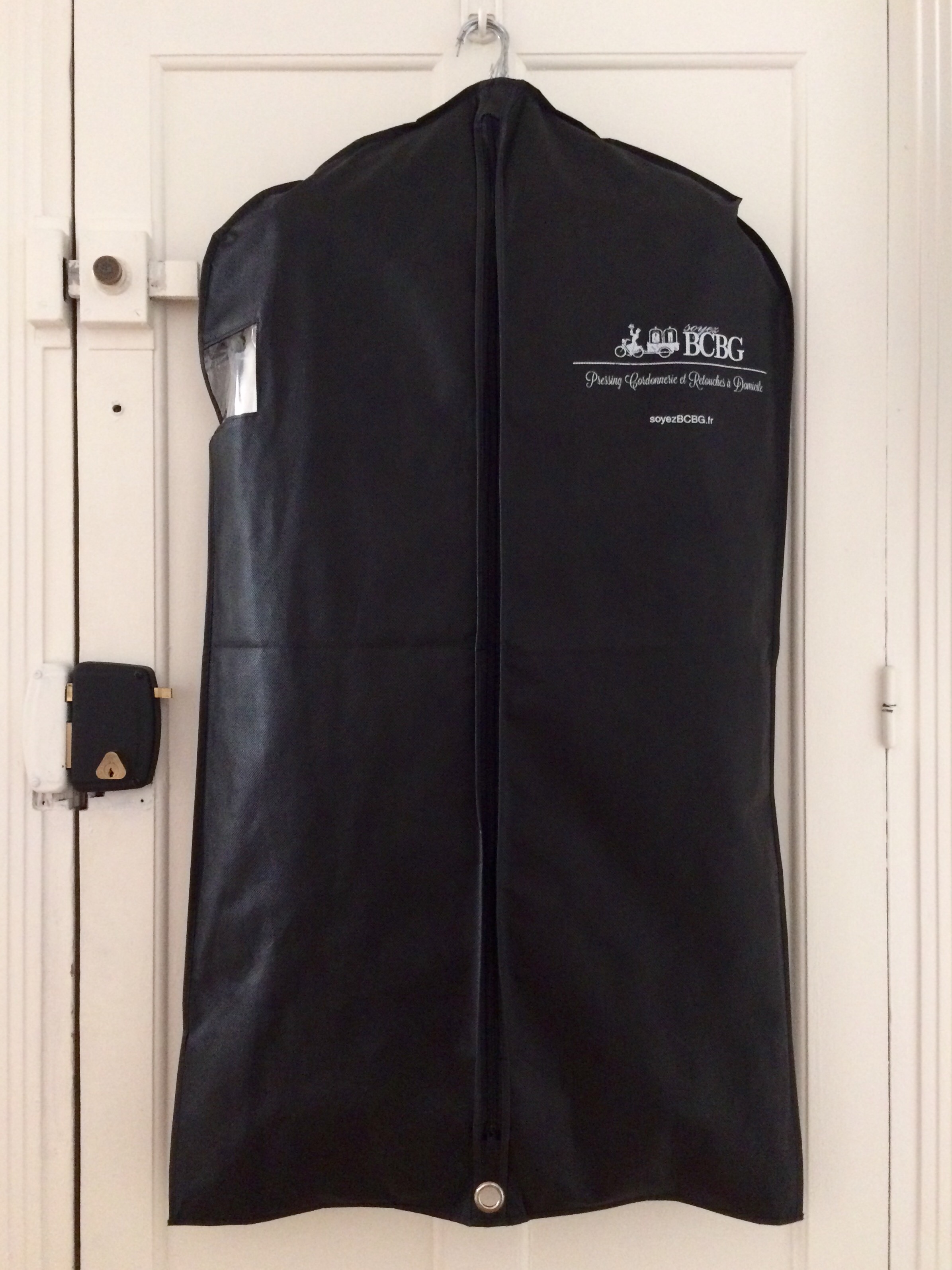 Concernant le service, c’est vraiment du haut de gamme. Les prix ne sont pas plus élevés que dans votre pressing/cordonnerie habituels. Vous avez des rappels par SMS pour vous rappeler la venue des grooms, qui sont ponctuels et courtois. Vos habits reviennent dans une housse SoyezBCBG (que vous pourrez réutiliser pour vos futures commandes), individuellement sur cintre et sous plastique. Avec ça, vous avez un petit mot personnalisé, quelques friandises (je suis faible, je sais) et une offre de cirage offert pour votre commande suivante.
