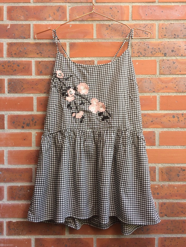 Top imprimé Vichy noir et blanc avec broderies, 11€