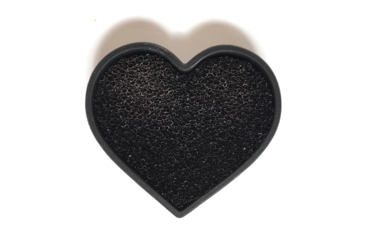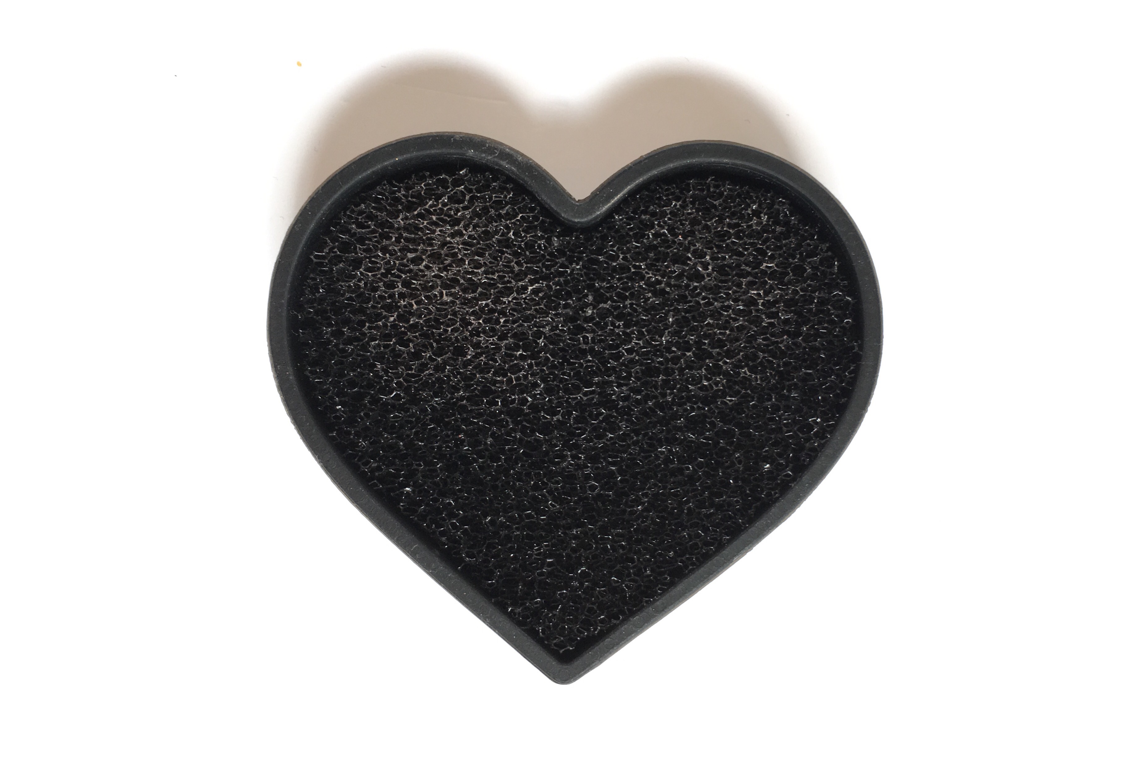 J’ai acheté cet objet chez Primark sans grande conviction, mais pour 2,50€ je me suis dit qu’il fallait tenter le coup et lui laisser sa chance. C’est un nettoyant pour pinceaux secs. Donc pas besoin d’aller dans la salle de bain, de sortir le gel douche, d’attendre que le pinceau sèche… Il suffit de frotter celui-ci contre la sorte d’éponge noire au milieu du coeur et le maquillage qui était sur le pinceau disparaît en quelques secondes. Alors je ne pense pas que cela convienne à un pinceau gorgé de fond de teint (de toutes façons c’est plus hygiénique de le laver régulièrement à l’eau et au savon), par contre pour les pinceaux yeux, c’est l’outil parfait. Il vous permet de changer de couleur de fard à paupière, tout en utilisant le même pinceau 1 minute après ou le lendemain. Vous pouvez bien sûr laver l’éponge régulièrement pour enlever les restes de maquillage. Et je pense que la partie inférieure, en silicone nervuré, peut être pratique si vous n’avez rien d’autre pour laver vos pinceaux.