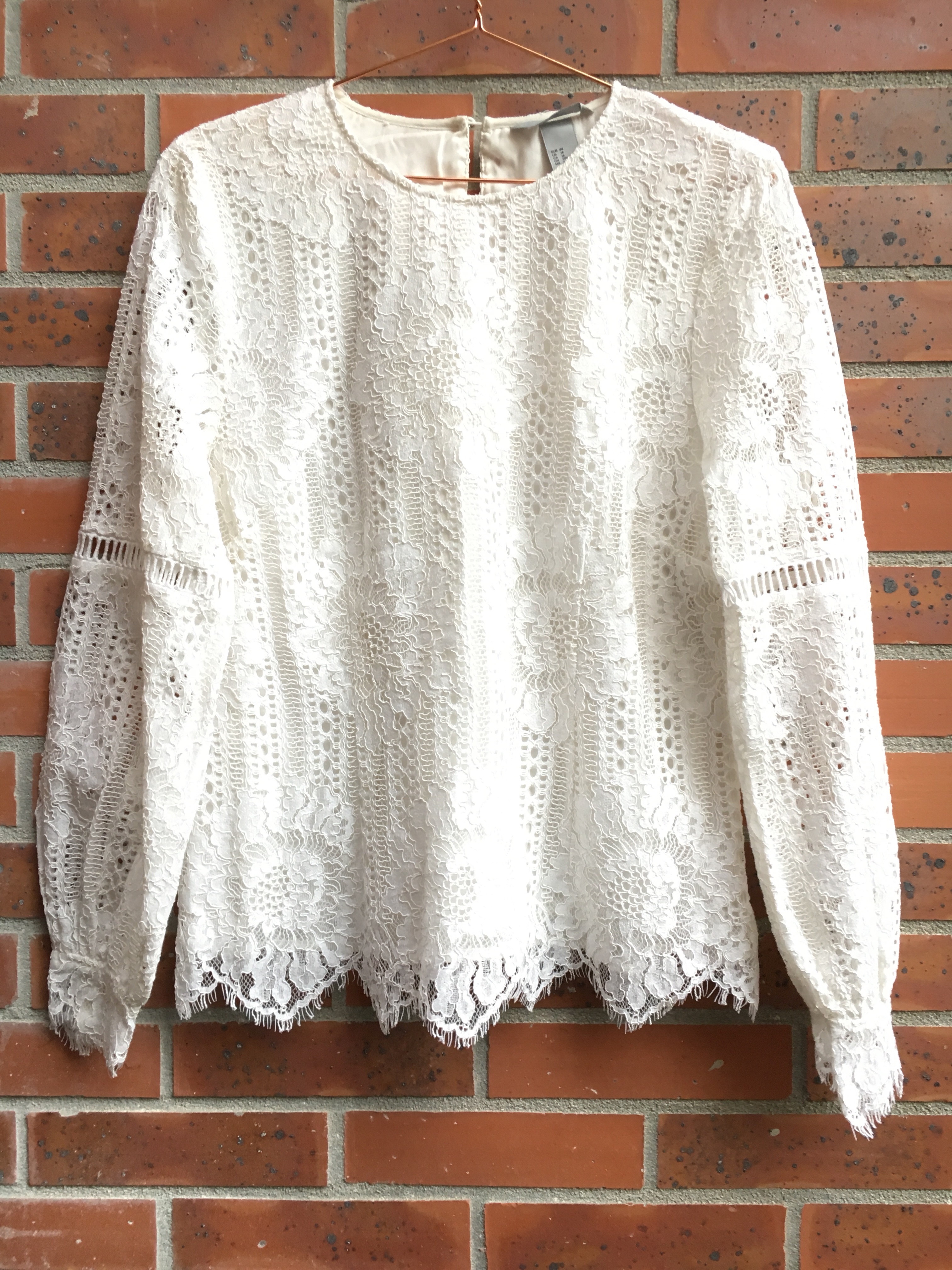 Blouse en dentelle écrue H&M, 23,80€ au lieu 39,99€ (-30% puis -15%)