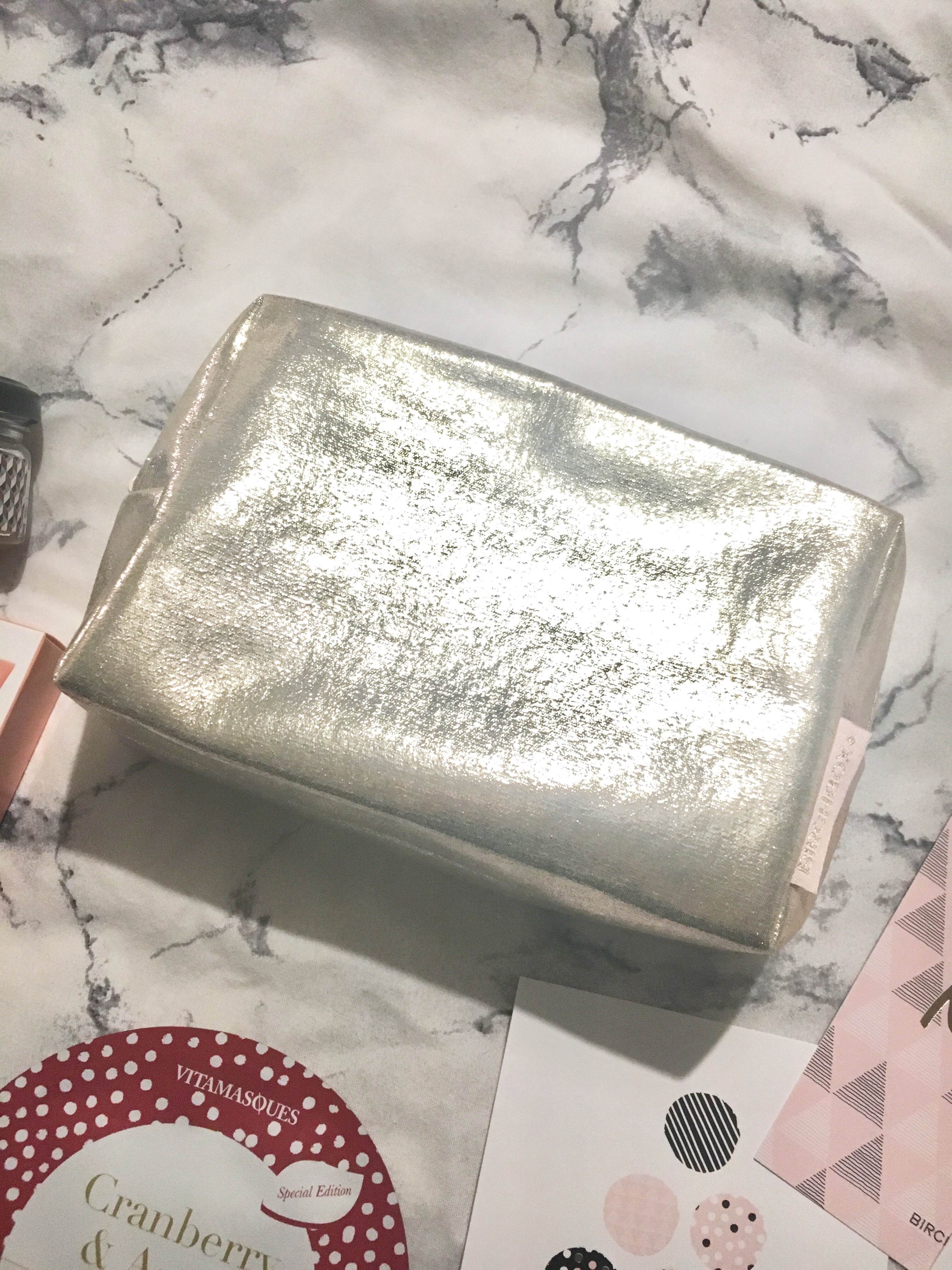 - une trousse à maquillage dorée BIRCHBOX: quelle bonne idée d’ajouter une pochette à la box ! Elle est vraiment mignonne et la taille est idéale pour emmener son maquillage en voyage.