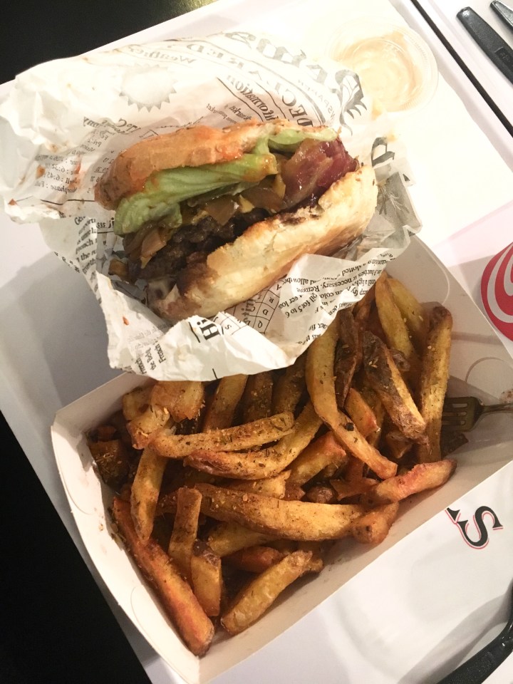 Je ne dis jamais non à un burger et ce mois-ci j’ai pu tester le restaurant Burger & Fils, dans le 8ème. Vous pouvez y composer votre menu (burger + accompagnement + boisson) et choisir les ingrédients de votre burger selon vos envies. J’ai vraiment adoré pouvoir tout personnaliser et la régalade était au rendez-vous car les produits sont délicieux ! Ma recette : bacon cheeseburger, avocat, salade, oignons caramélisés, sauce pimentée et sauce des fils, avec des frites aux épices (vraiment très bonnes !).
