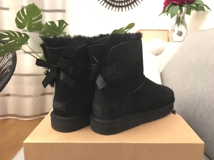 Là, 2 camps s’affrontent : ceux qui adorent et ceux qui détestent. Je ne pas suis forcément partisane des UGG, mais j’avoue que j’en avais un peu marre de me geler les orteils en basket lorsqu’il faisait -2°. J’ai donc profité des soldes pour m’acheter ma première paire de UGG. Je les ai prises noires, pour qu’elles aillent avec tout et ne se salissent pas, avec un petit noeud en satin derrière, ce qui leur ajoute une touche de chic. Vous êtes pour ou contre, vous ?