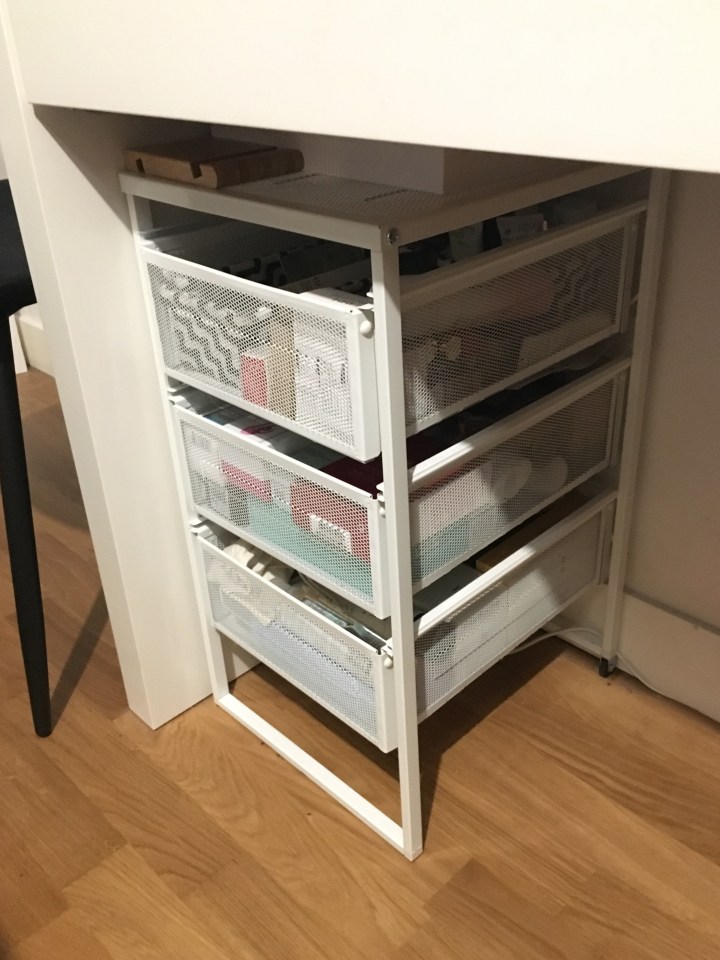 Chez moi j’ai toujours beaucoup de produits à tester, à vendre ou en double, que j’accumulais dans des paniers… Lorsque j’ai vu ce mini meuble Ikea sur Instagram, j’ai foncé l’acheter chez Ikea pour l’installer sous ma coiffeuse MALM. Il dispose de 3 tiroirs spacieux et assez robustes, et il a deux roulettes si besoin de le déplacer. Ce n’est pas le plus beau, mais pour 10€ il fait parfaitement l’affaire.