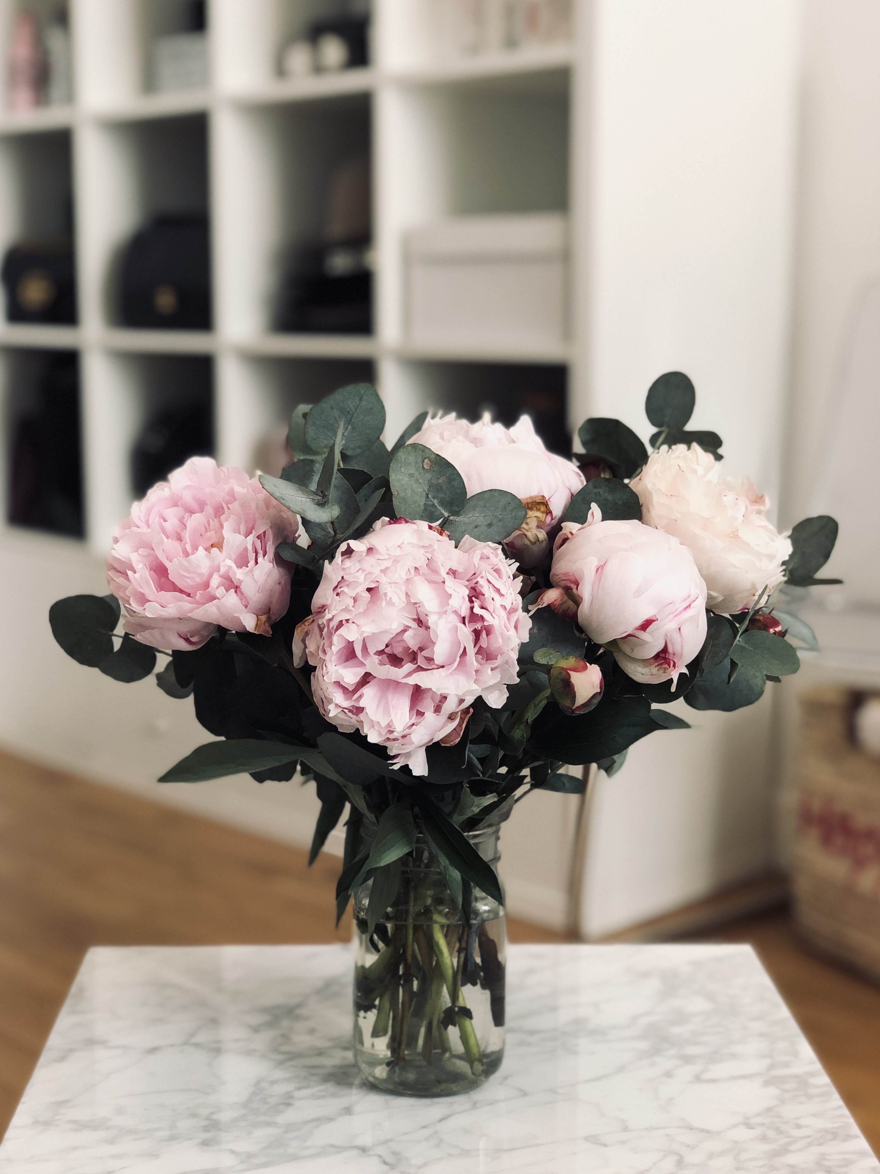 On n’a jamais trop de fleurs, n’est-ce pas ? Surtout qu’on ne peut profiter de ces beautés que 2 mois dans l’année. Lors de ma soirée d’anniversaire, un couple d’amis m’a gâtée avec ce très beau bouquet de pivoines et d’eucalyptus (qu’ils ont trouvé chez Monceau Fleurs, super bien emballé d’ailleurs : avec une réserve d’eau et dans un très joli sac qu’on peut facilement poser).