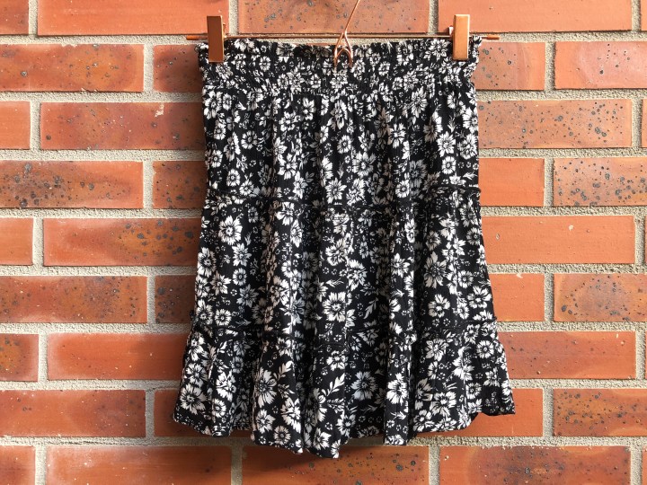Jupe fluide à imprimé floral noir/blanc, 8€