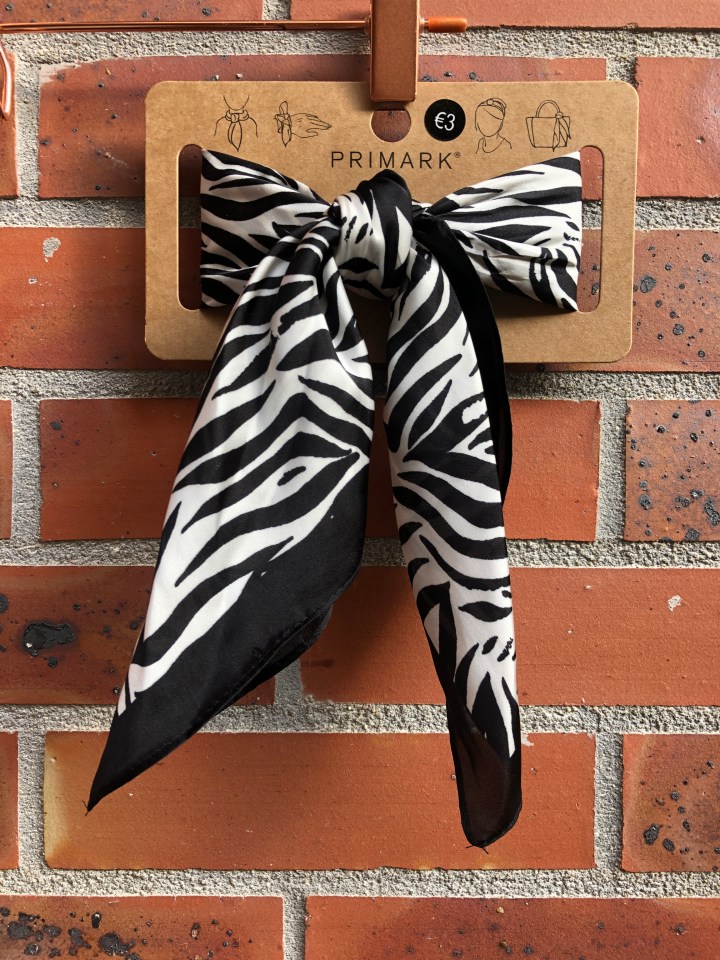 J’aime beaucoup ce type de foulard en été, surtout pour garder mes cheveux hors de mon visage. Je peux le nouer façon Latina sur le dessus de la tête, ou faire un noeud simple au milieu et l’attacher derrière. L’imprimé zèbre noir et blanc sera, je pense, très facile à assortir avec de nombreuses tenues et mes maillots.