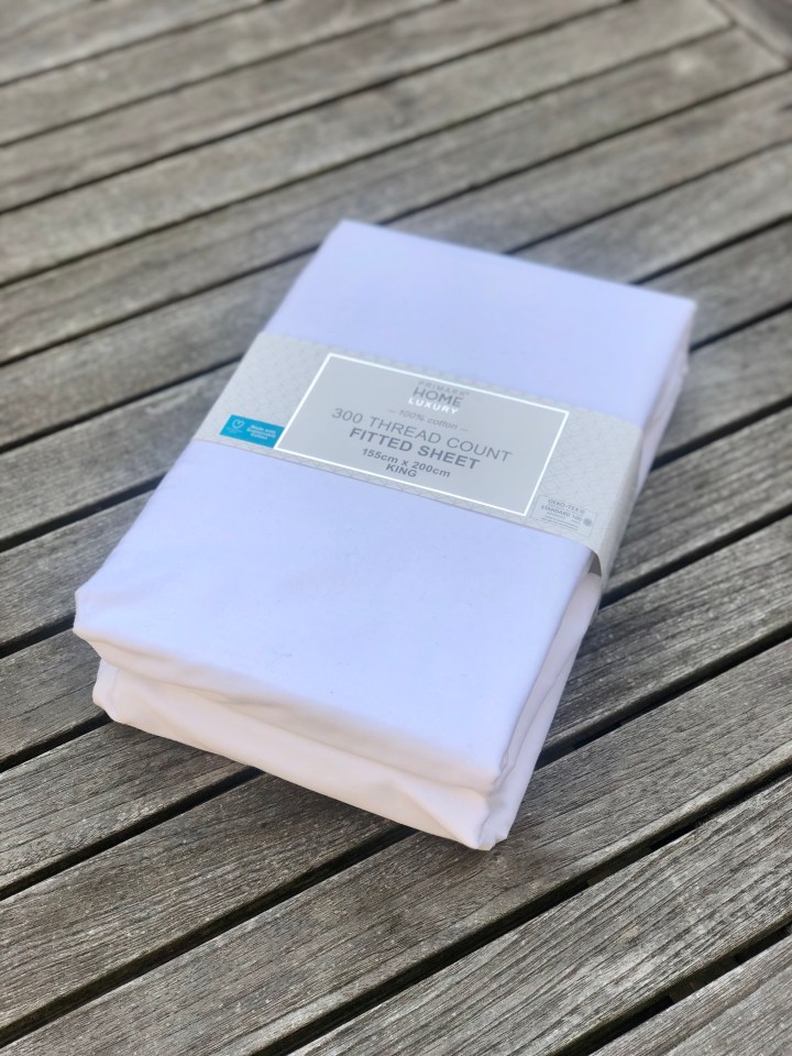 J’achète presque toutes mes parures de lit chez Primark car elles sont très jolies et ne coutent pas cher (environ 20€). Celle-ci était un peu plus onéreuse car elle fait partie de la collection Luxury, de meilleur qualité, mais regardez comme elle est jolie avec ses empiècements en relief ! Pour aller avec j’ai acheté un nouveau drap housse blanc, hyper qualitatif, on dirait presque de la soie ce qui le rend super confortable (et il est adapté aux matelas très épais), je vous le conseille vraiment.