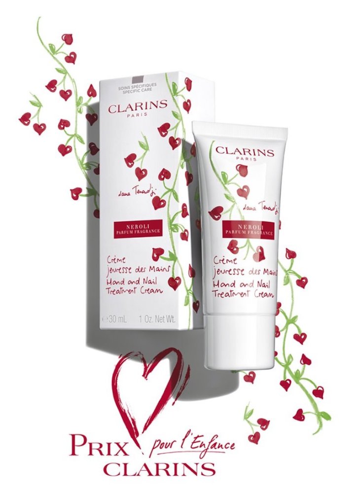 Je vous ai déjà parlé de la Crème Jeunesse Mains Clarins ici, donc je vais revenir très rapidement dessus afin que ça ne soit pas trop redondant : j’ai toujours eu le format nomade (très pratique pour le bureau ou le sac à mains) qui me dure en général un bon trimestre à raison d’une utilisation par jour; sa texture onctueuse enrichie en beurre de karité est très hydratante mais a l’avantage de ne pas coller du tout après application et l’odeur est plutôt neutre. Mais celle que je vous présente aujourd’hui est l’édition spéciale exceptionnellement parfumée au Néroli (une odeur suave et solaire que j’aime beaucoup) du Prix Clarins pour l’enfance. Depuis plus de 20 ans, le groupe Clarins soutient 15 associations caritatives qui oeuvrent dans différents domaines en faveur des enfants : A chacun son Everest, Enfants de la Terre, Mécénat Chirurgie Cardiaque, Asmae, La chaîne de l’espoir, Les Liens du sens, Caméléon, J’ai un rêve, ABC Autisme, Voix en développement, O Africa, Toutes à l’école, Princesse Margot, La Bonne Etoile. Comme vous pouvez le voir, ce packaging en édition limité a été illustré par la journaliste Laura Tenoudji, marraine de l’association Mécénat Chirurgie Cardiaque. Pour chaque tube de crème acheté, sur 12€, 2€ sont reversés par Clarins (et 1€ supplémentaire par Nocibé) aux associations soutenues par le Prix Clarins. Et si toutefois vous souhaitez prendre part à cette chaine de solidarité du Prix pour l’Enfance Clarins sans effectuer d’achat, la marque lance le filtre Instagram « Arbre à coeurs ». Pour chaque téléchargement du filtre, 1€ de plus sera reversé à l’association (RDV en story sur l’IG de @clarinsfr). De quoi faire une BA en beauté !