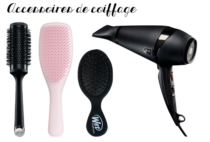 Ça fait quelques années que je ne jure que par elles : les Tangle Teezer. Je les ai sous différentes versions, avec ou sans manche, sur ma coiffeuse ou au bord de ma baignoire. Leurs picots en silicone sont exceptionnels pour démêler sans jamais casser la fibre et arracher les cheveux. Grâce à ma routine actuelle, je n’ôte qu’une dizaine de cheveux de cette brosse en fin de semaine et surtout je n’ai presque jamais de noeuds, même au réveil. Dans ma trousse de voyage/plage, j’ai une brosse similaire : la Wet Brush Mini Happy Hair. Elle est plus petite mais dispose d’un manche qui rend la prise en main très facile et elle dispose de picots flexibles tout aussi efficace lors du démêlage. Lorsque je veux faire un brushing, je privilégie ma brosse ronde GHD (j’ai la taille 2 mais achetez celle qui convient à votre longueur/épaisseur de cheveyx), qui est plus costaud car en métal et plastique rigide, et qui a été conçue spécialement pour que la chaleur puisse passer à travers et faciliter le séchage. Contrairement à d’autres brosses rondes, mes cheveux ne sont jamais restés coincés autour et elle les agrippe très bien. Un must have selon moi si vous êtes une adepte des brushings (elle n’est pas donnée au départ mais vous la garderez des années alors autant investir).