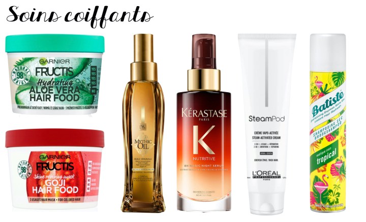 Depuis des années je n’utilise que les shampoings secs Batiste (qui existent en différents formats ce qui permet de les emmener en weekend/vacances) pour donner un coup de frais à mes cheveux quand ils en ont besoin et qui me permettent d’espacer les shampoings (ça le retarde d’un jour, pas plus). Mon favori c’est la senteur Tropical, que je trouve chez Primark, Action ou Normal.