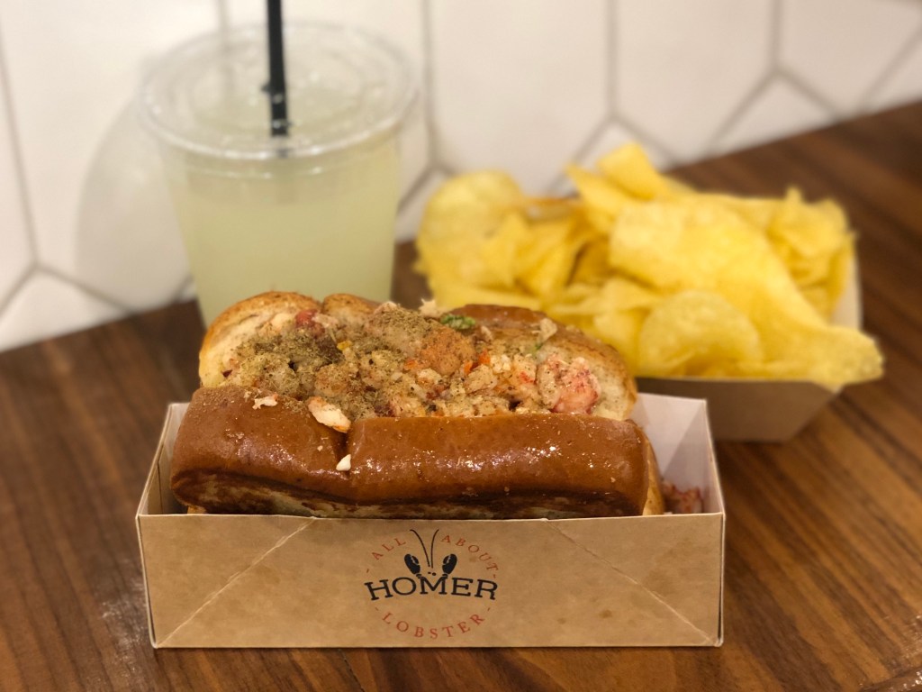 Le weekend dernier j’ai profité d’être de passage à Odéon pour tester Homer Lobster, un restaurant sur le pouce spécialisé dans les lobster rolls. J’ai choisi le menu XL avec le Connecticut (une double portion de homard un peu tiède, avec du beurre citronné, dans son pain brioché toasté), accompagné de chips à la truffe et d’une limonade maison. C’était vraiment super bon, je vous conseille de goûter si vous passez devant ! En revanche, 27€ pour manger façon fast food (commande au comptoir, vaisselle jetable, tables communes et porte grande ouverte par 10°) c’est un peu onéreux à mon sens.
