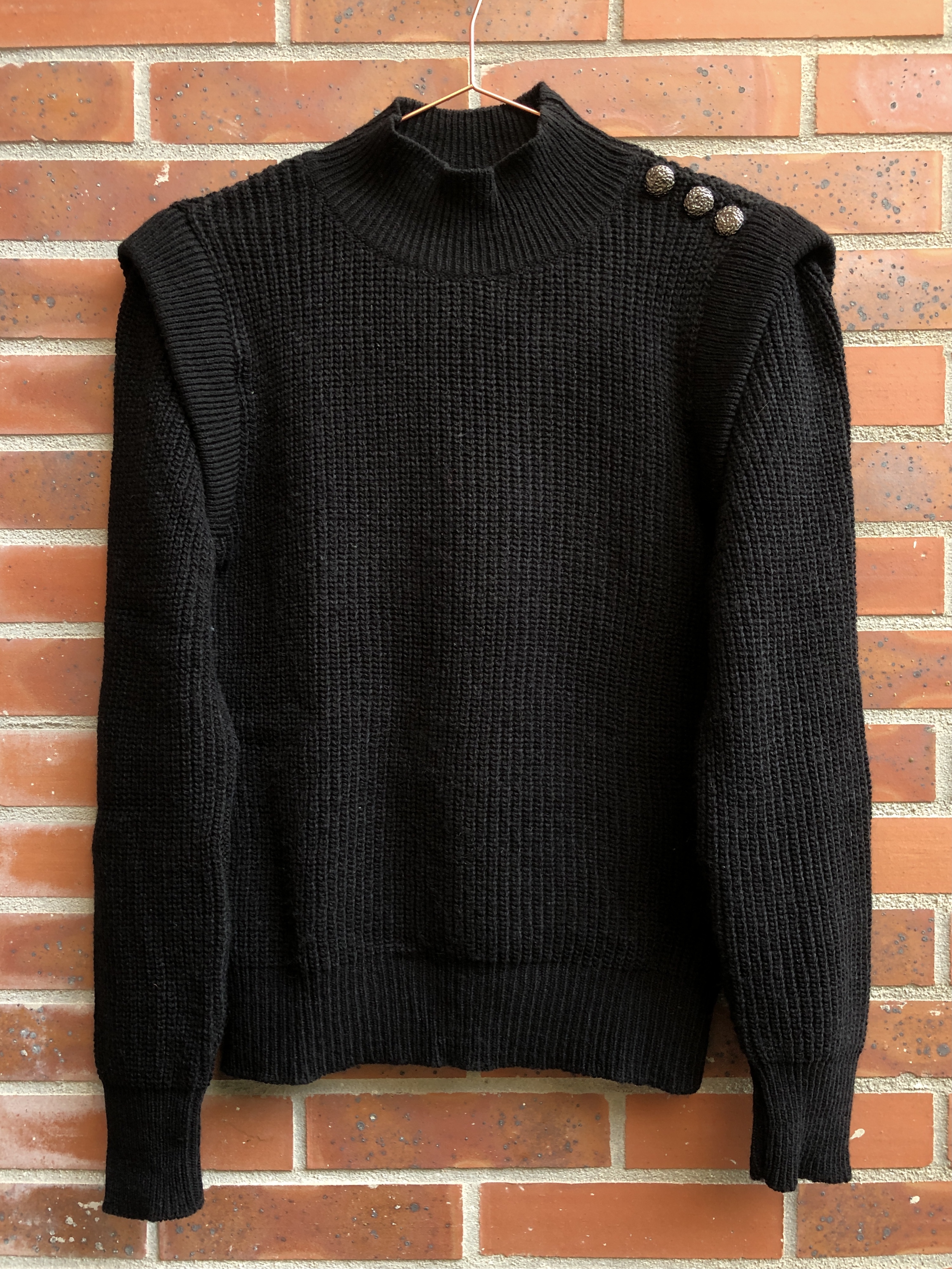 J’aime beaucoup passer chez Kiabi car j’y fais toujours des trouvailles. Là, c’était ce pull qui existe aussi en gris foncé. Les petits boutons sur les épaules rappelle le style Balmain et le réhaussement au niveau des épaules rappelle le style Isabel Marant. La qualité de la maille n’est pas incroyable, vu le prix, mais il ne bouge pas au lavage pour l’instant.