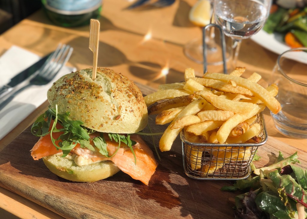 Le Café Seguin se trouve à Boulogne et j’y ai récemment déjeuner avec ma mère et ma soeur (la terrasse est parfaitement orientée au soleil !). Ça a été très difficile de choisir entre le Black Burger (cheddar, bacon, boeuf…) et le burger de la semaine qui était un bun à la pistache, avec du saumon cuit et fumé, de la roquette et un mayonnaise au curry. J’ai choisi ce dernier et il était vraiment incroyable ! (J’ai pu gouter le noir que ma soeur a pris, un délice aussi.) Si vous cherchez un burger vraiment qualitatif avec de super frites à Boulogne, allez-y !