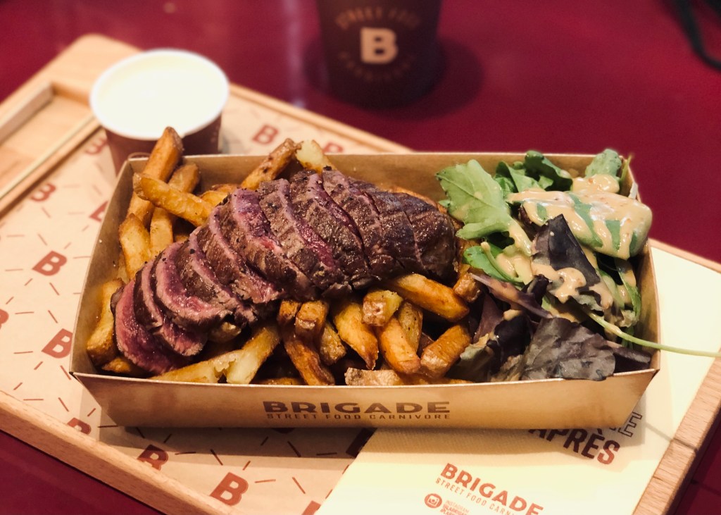 La 1ère fois que j’ai goûté La Brigade c’était à leur foodtruck du Trinquet cet été et j’avais été un peu déçue… Mais comme il ne faut jamais rester sur une déception, j’y suis retournée récemment, cette fois dans leur restaurant de la rue de Réaumur. Et vraiment, c’est tout ce que j’aime : du boeuf super tendre et saignant, des frites maison croustillantes, une sauce roquefort/miel dingue et même des cookies pour la touche finale sucrée.