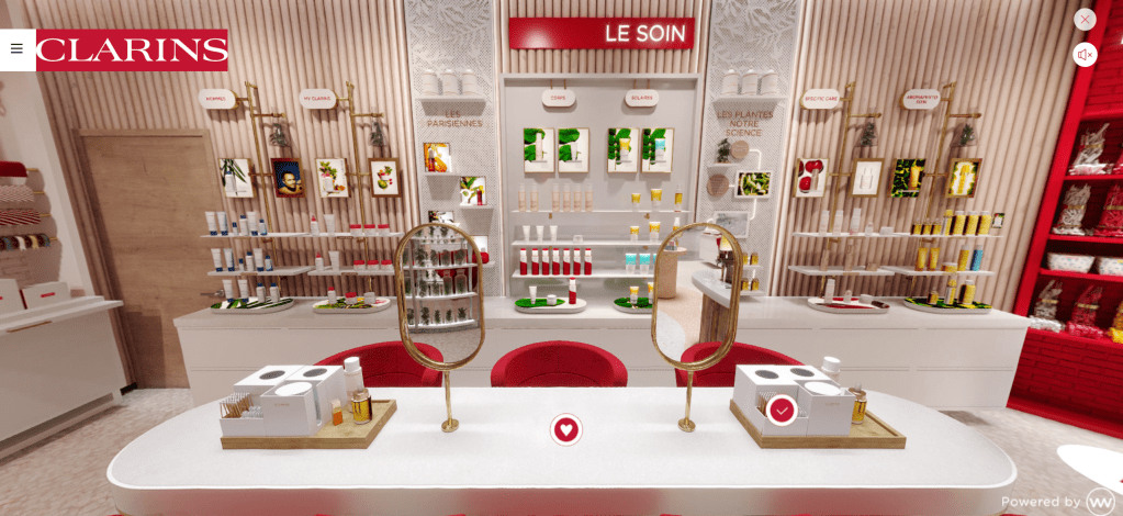 Tout a beaucoup changé en un an et les expériences en magasin ne sont désormais plus les mêmes, surtout lorsqu’il s’agit de cosmétiques. Clarins a souhaité offrir à ses clientes un parcours complet, immersif, divertissant et instructif, comme en magasin, auquel elles peuvent accéder directement de chez elle (via un ordinateur ou un smartphone). Je vous présente donc ce que brièvement ce que renferme la première boutique virtuelle Clarins, mais je vous invite vivement à aller la voir par vous-même en cliquant ici.