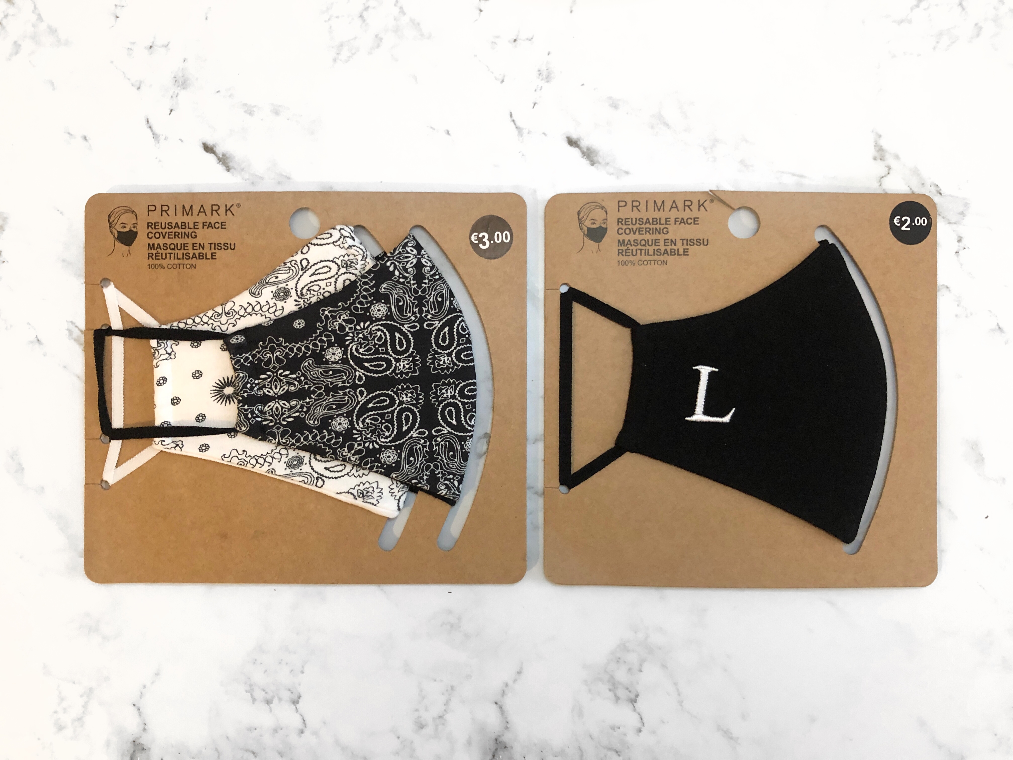 Primark a sorti de très jolis masques visage récemment et j’ai acheté 3 modèles. Un duo à motif bandana, noir/blanc et blanc/noir, parce que je trouve cet imprimé très joli. Et un masque plus simple, tout noir, avec mon initiale brodée dessus (il y a bien évidemment toutes les lettres). Ils sont très bien taillés et ajustés, donc pour ce prix foncez, c’est toujours plus joli que les masque jetables bleus.