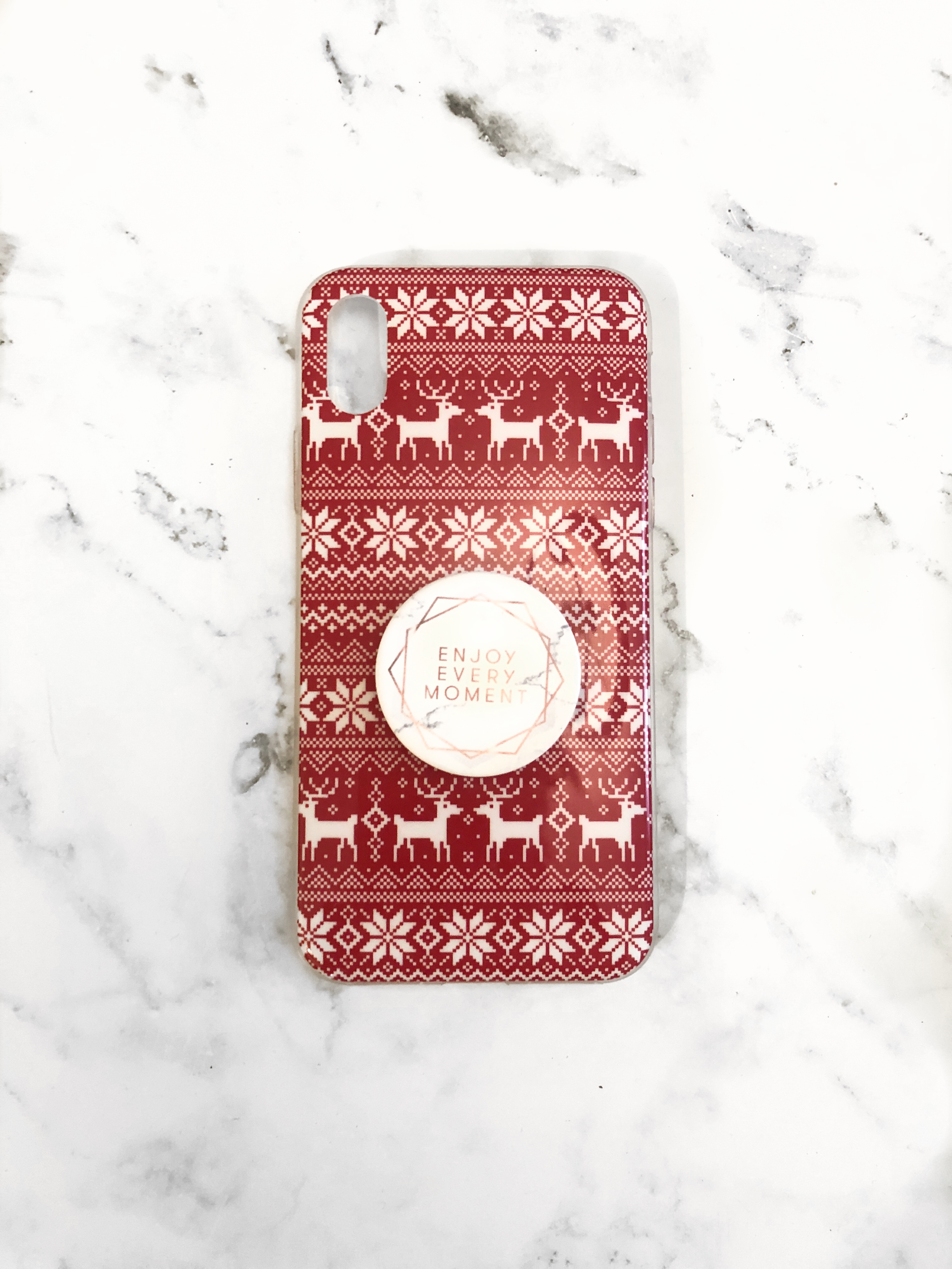 Pas de raison que mon iPhone ne soit pas habillé pour la saison lui aussi ! Je lui ai donc pris une petite coque en silicone (les meilleures, je déteste les coques rigides qui se cassent et protègent mal l’iPhone) avec un imprimé rouge et blanc très pull de Noël. En plus, pour une fois qu’ils font des coques destinées à l’iPhone X…