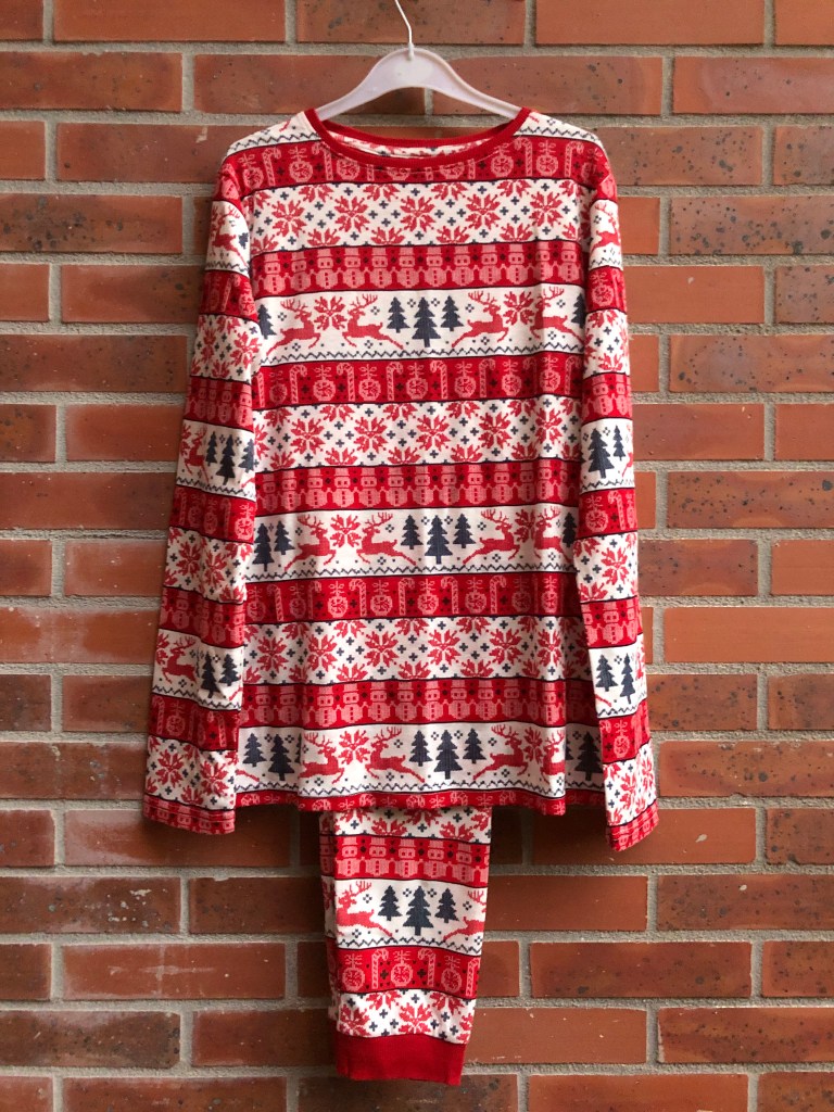Deuxième pyjama (confinement + hiver oblige), mais dans une version plus kitsch. Ça fait quelques années que je voulais un pyjama de Noël et Primark a sorti ce modèle à petit prix. D’ailleurs il existe aussi pour homme, enfant et chien ! Honnêtement ce n’est pas de la grande qualité, à ce prix-là il ne faut pas rêver, mais il fera quelques mois de décembre et basta.