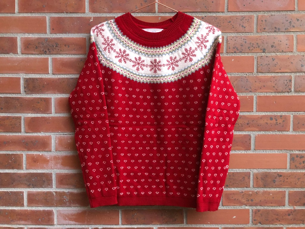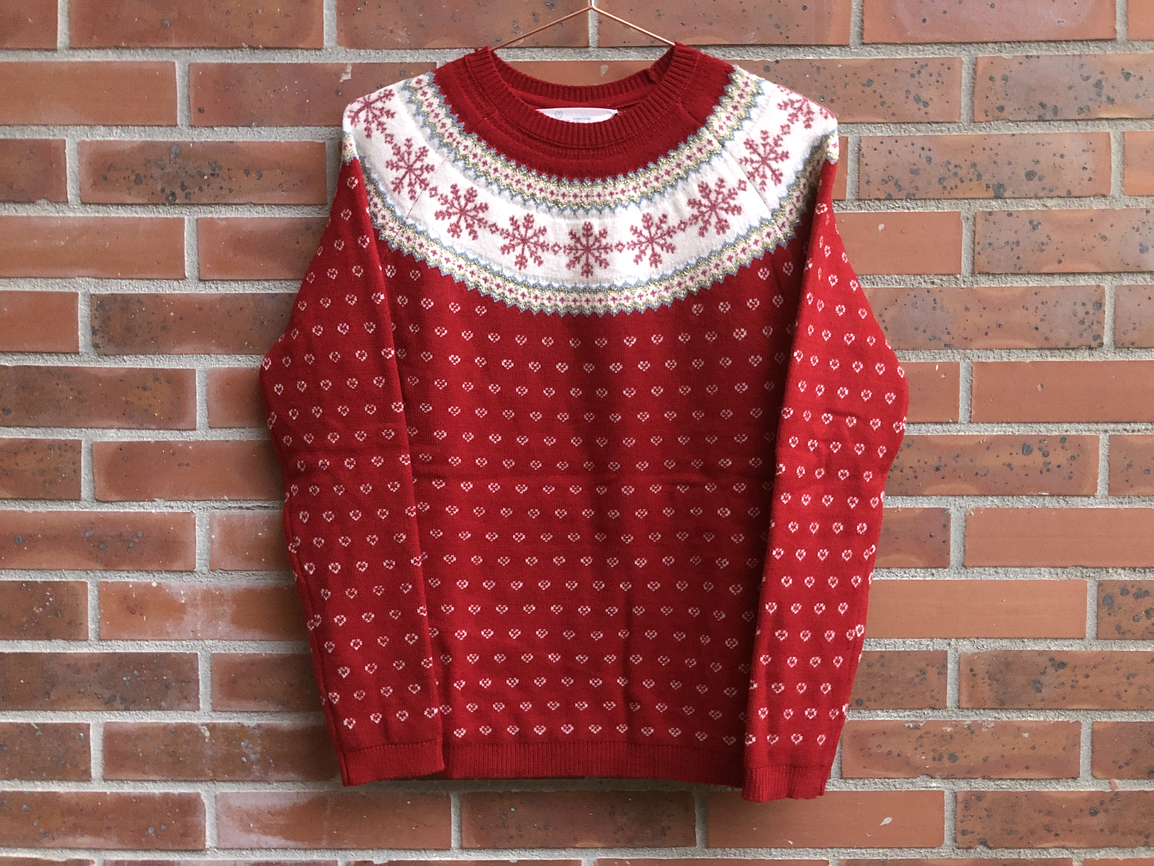 Oui, on est sur une grosse thématique là ! Depuis 2 ans j’ai un sweat avec un imprimé de fête (candy cane, gingerbread, flocons, houx…) mais j’avais envie d’avoir un vrai pull de Noël. Celui-là est très bien car il est assez joli pour être porté tout l’hiver, donc tout de même plus rentable. D’autant que je l’ai pris dans la plus grande taille du rayon enfant (où tout est moins cher !). En plus il est très épais et donc super chaud (mais il grossit un peu visuellement).
