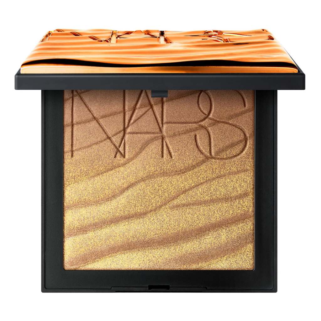 Cette petite beauté est une édition limitée lancée par NARS l’été dernier (il est toutefois toujours disponible à la vente). Il s’agit d’une réédition spéciale de Laguna, l’équivalent chez les bronzer du célèbre blush Orgasm – que j’adore. Pour rendre exclusive cette poudre de soleil, NARS lui a offert un nouvel écrin carré, orné d’une plaque en métal cuivré dont le relief rappelle les petites dunes que la marée laisse dans le sable humide après son passage. Pour pousser un peu plus loin la métaphore avec le nom Paradise Found, NARS a rajouté un très léger parfum de Monoï de Tahiti à sa poudre bronzante; je trouve juste dommage qu’on ne la sente qu’en mettant son nez à quelques centimètres du produit car c’est très plaisant. La poudre, quant à elle, est recouverte d’une fine pellicule de micro-paillettes dorées, qui font échos aux nacres de la teinte Laguna. Honnêtement, si j’ai trouvé ça superbe en ouvrant le boitier, j’ai aussi trouvé ça très agaçant. Tout simplement car les paillettes sont juste superficielles pour quelqu’un qui chercherait un mix entre bronzer et highlighter, mais surtout too much pour quelqu’un qui cherche un simple bronzer. Il m’a fallut les ôter à l’aide d’un coton et d’un pinceau afin de les faire disparaître mais j’avais quand même des micro paillettes dorées un peu partout sur le visage lors des premières utilisations du bronzer… Maintenant que ce n’est plus le cas, je peux enfin profiter de la beauté de la poudre bronzante Laguna, une teinte marron caramel avec des reflets irisés dorés, qui restent assez discrets mais illuminent juste ce qu’il faut sur le teint (je viens d’ailleurs de voir qu’il existe une version matte et je suis sûre que je l’aimerais encore plus !). C’est un bronzer facile à appliquer, pigmenté mais assez modulable, parfait pour un contouring naturel qui réchauffe le teint comme si vous aviez un peu pris le soleil. C’est un très gros bronzer de 16g (ceux de 8g coûtent 38€), pas des plus pratiques à emmener en voyage, mais si vous êtes une inconditionnelle de la teinte Laguna, c’est l’heure d’investir.