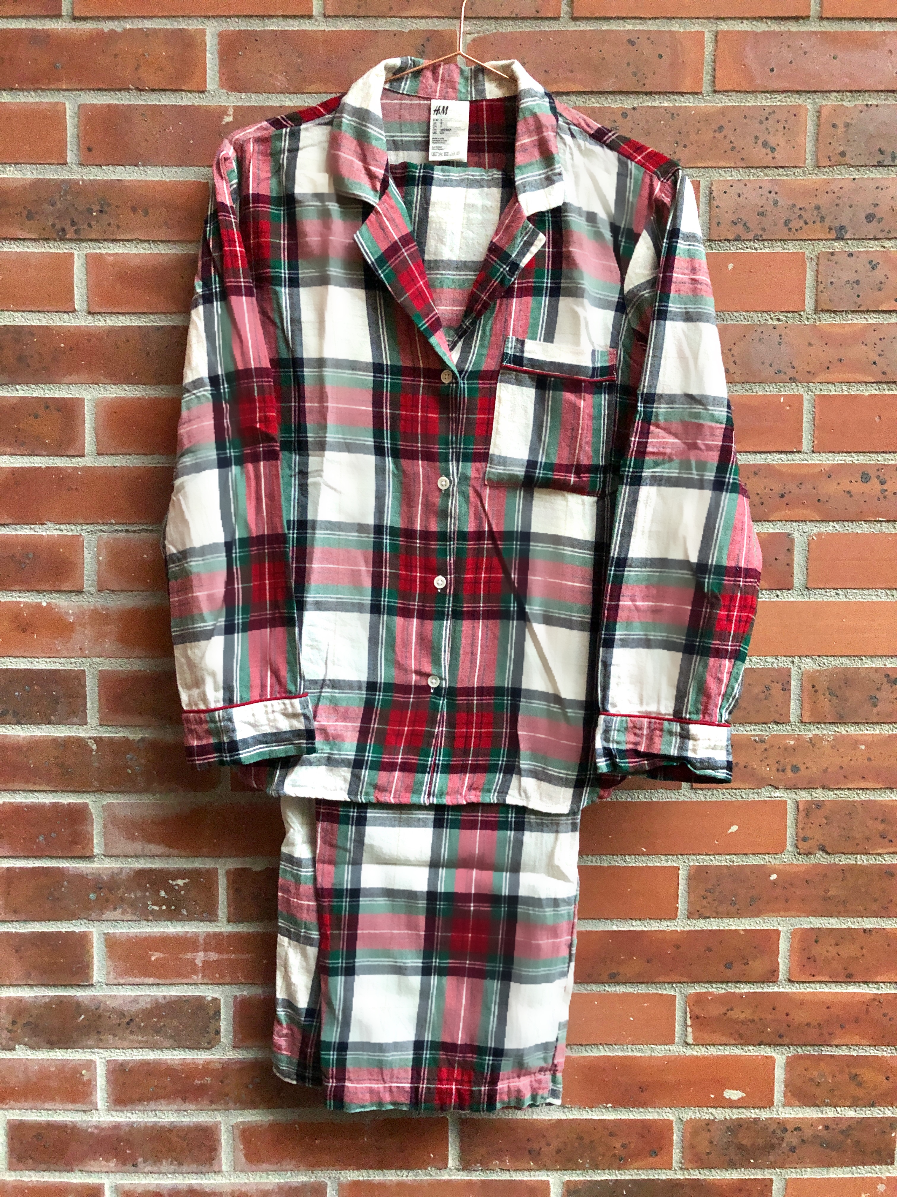 Depuis le temps que je voulais un pyjama de Noël, j’ai fini par craquer sur ce modèle en flanelle H&M (qu’on a pas mal vu sur Instagram courant décembre). Il est super doux, super confortable, super chiffonable (comme le prouve la photo alors que je l’ai steamé la veille). Comme il n’est pas trop connoté Noël avec son imprimé plaid, je peux le porter tout l’hiver sans problème.