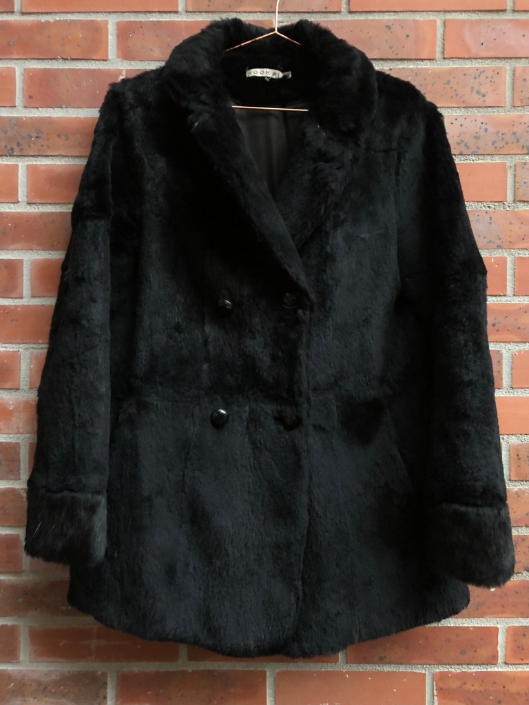 Je vous ai déjà parlé plusieurs fois des Apprentis d’Auteuil dans le 16ème, où l’on peut dénicher des vêtements de seconde main (si les vide greniers vous manquent…). Quand j’y ai travaillé comme bénévole en décembre, je suis tombée sur ce manteau Kookaï en fourrure de lapin noire vraiment sublime (et en plutôt bon état !). Avec le recul, je pense qu’il y a eu erreur sur le prix – je pensais même que c’était du faux au départ – mais du coup j’ai fait une affaire de fou !