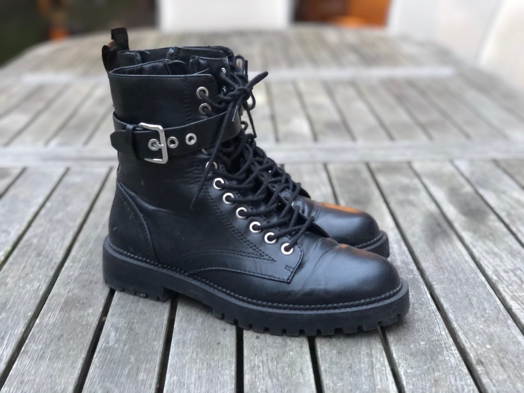 Presque chaque année je rachète une paire de boots noires et j’ai trouvé mon bonheur chez Pimkie. Vous les aviez vues en version vernie dans mon haul précédent mais je les avais prises trop petites et en allant les échanger j’ai croisé cette version plus sobre en simili cuir noir et j’ai préféré celles-ci. Elles ont une fermeture sur le côté, une boucle qui les rend un peu rock et une semelle crantée, les parfaites rangers !