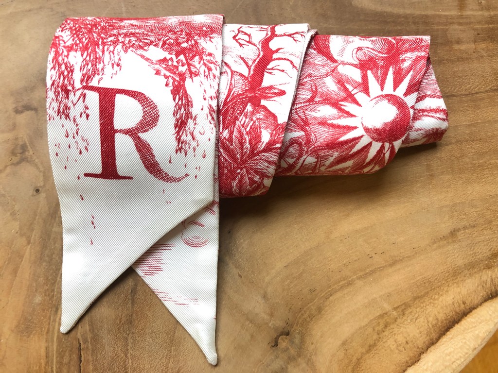 Eh oui, à force de participer à des concours sur Instagram, on en gagne ! Et j’ai eu beaucoup de chance avant Noël car j’ai gagné un petit foulard Dior (un peu comme les Twilly Hermès) appelé Mitzah. Il s’agit de la lettre R pour « Rêve », issu de leur gamme ABCDior, dans des tons rouge/blanc, qui ira à merveille sur l’anse de mon petit sac Balenciaga rouge.