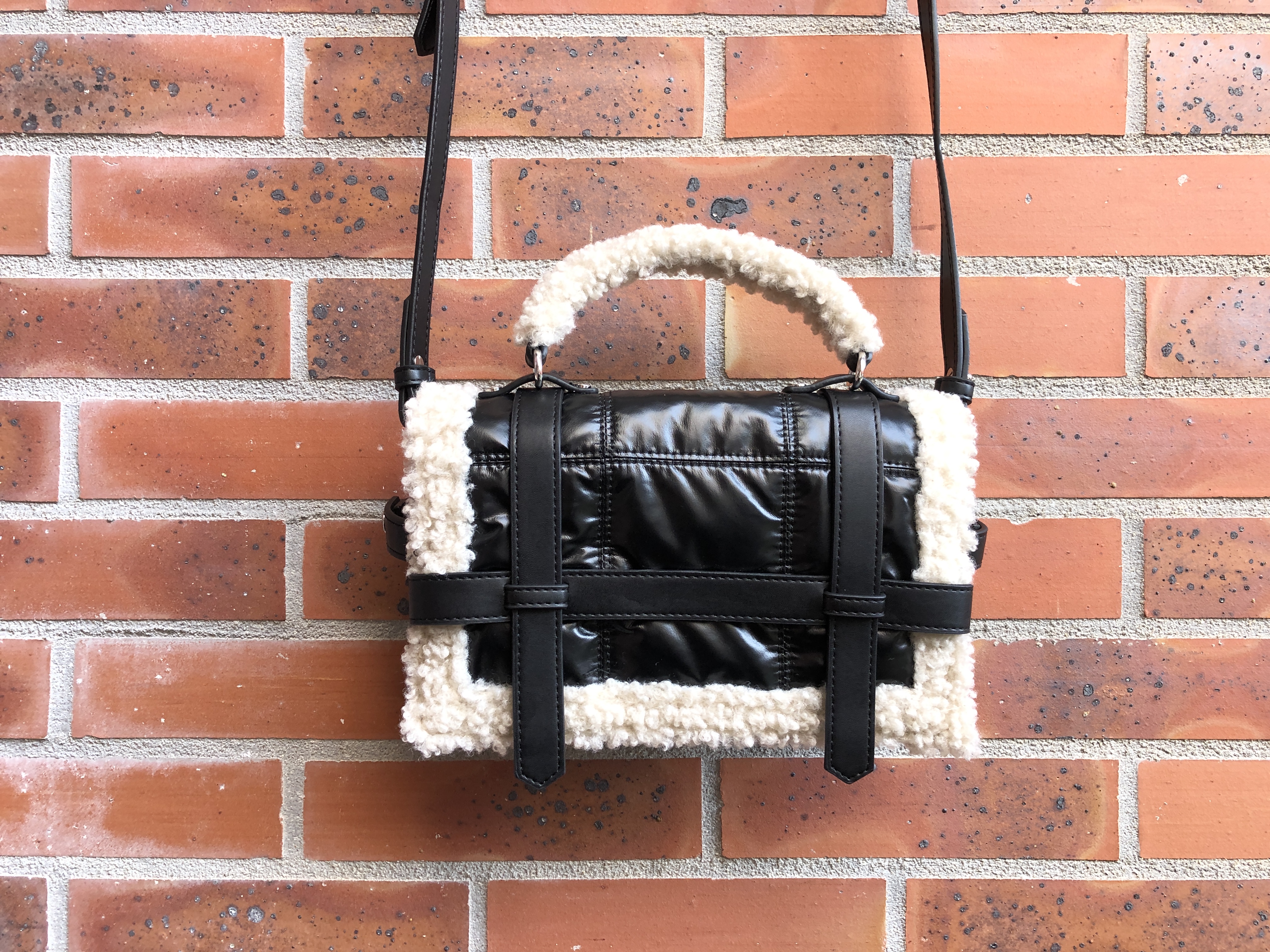 Petit sac chouchou, trouvaille en prix mini chez Zara. Puisque je l’avais vu et adoré chez une fille chez Lidl, mais il était encore à 40€ à ce moment-là. J’ai donc été ravie de le shopper à moitié prix quelques semaines après, complètement par hasard ! Entre son tissu style doudoune et son pourtour en faux mouton il est clairement destiné au saisons froides, mais j’ai trouvé qu’il était très original.