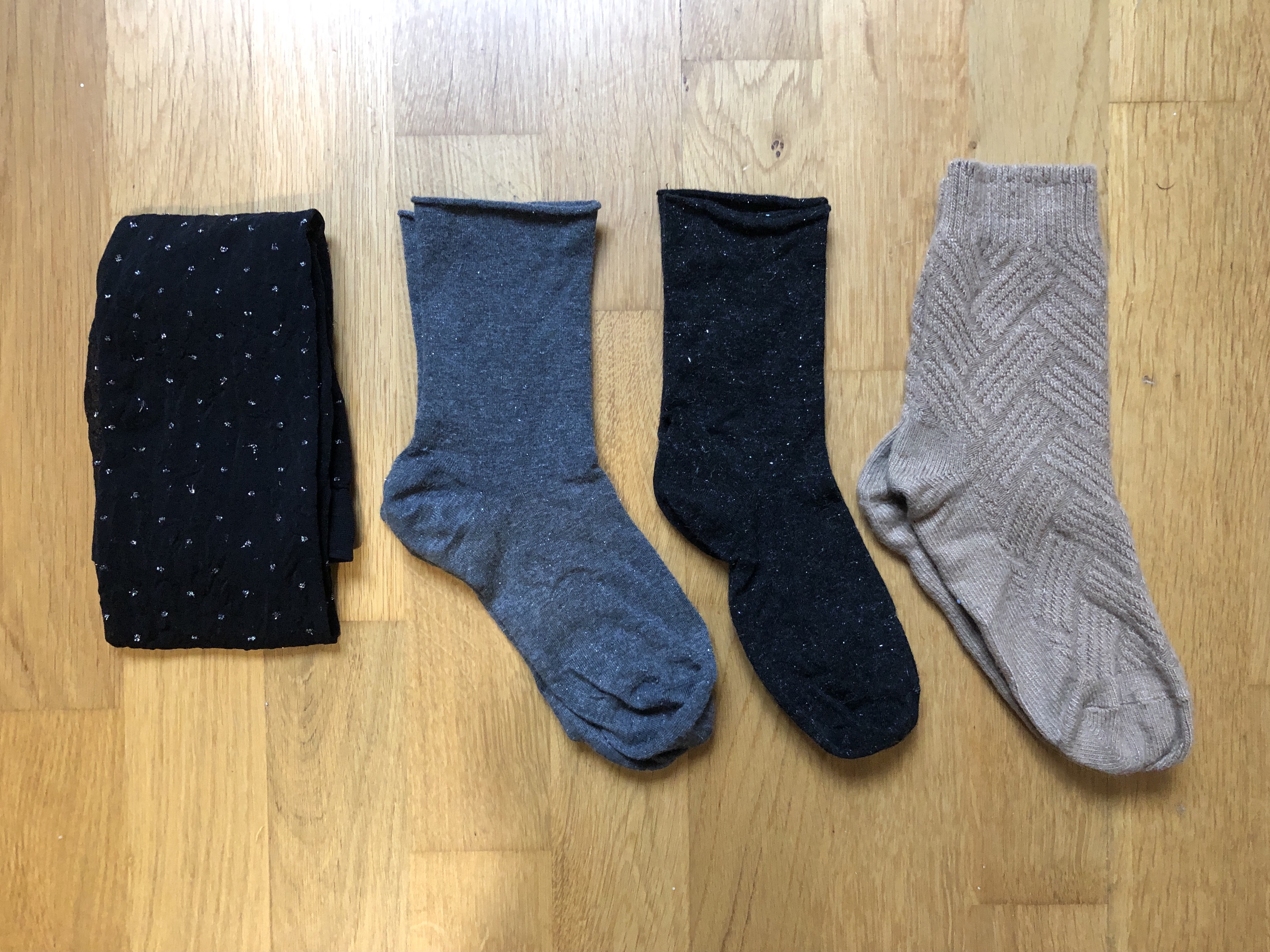 Je ne vais jamais chez Calzedonia sauf pendant les soldes pour faire un petit stock de chaussettes car je trouve qu’ils ont de super modèles (trop chers en temps normal). J’ai notamment pris celles en cachemire qui sont super confortables et toutes douces (mention spéciale pour les petites paillettes) et un autre modèle camel plus épais. J’ai aussi trouvé un collant en plumetis pailleté vraiment très original que j’ai payé 3x rien de fin de soldes !