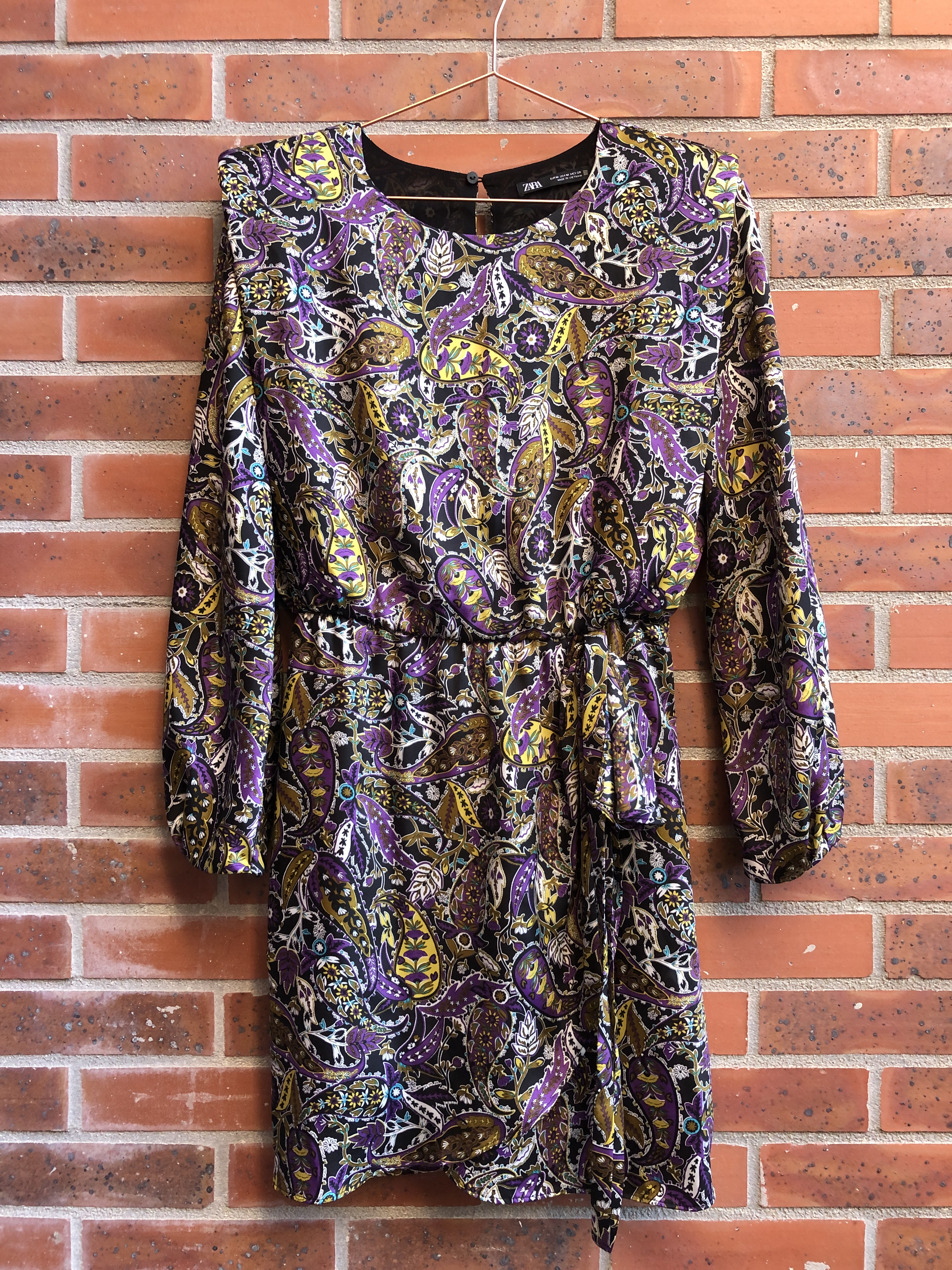 Dernier passage chez Zara samedi dernier où j’ai trouvé pas mal d’articles très cool hyper bien soldés, malheureusement la plupart ne m’allaient pas. Parmi eux se trouvai cette robe que j’ai longtemps vu dans la section à -40% mais que je trouvais encore un chouïa cher, n’étant pas à 100% convaincue du modèle. Finalement à 12,99€ je ne me suis pas privée et j’ai bien fait car portée elle est vraiment top avec ses épaulettes, son effet jupe portefeuille et son tissu satiné à imprimé cachemire.