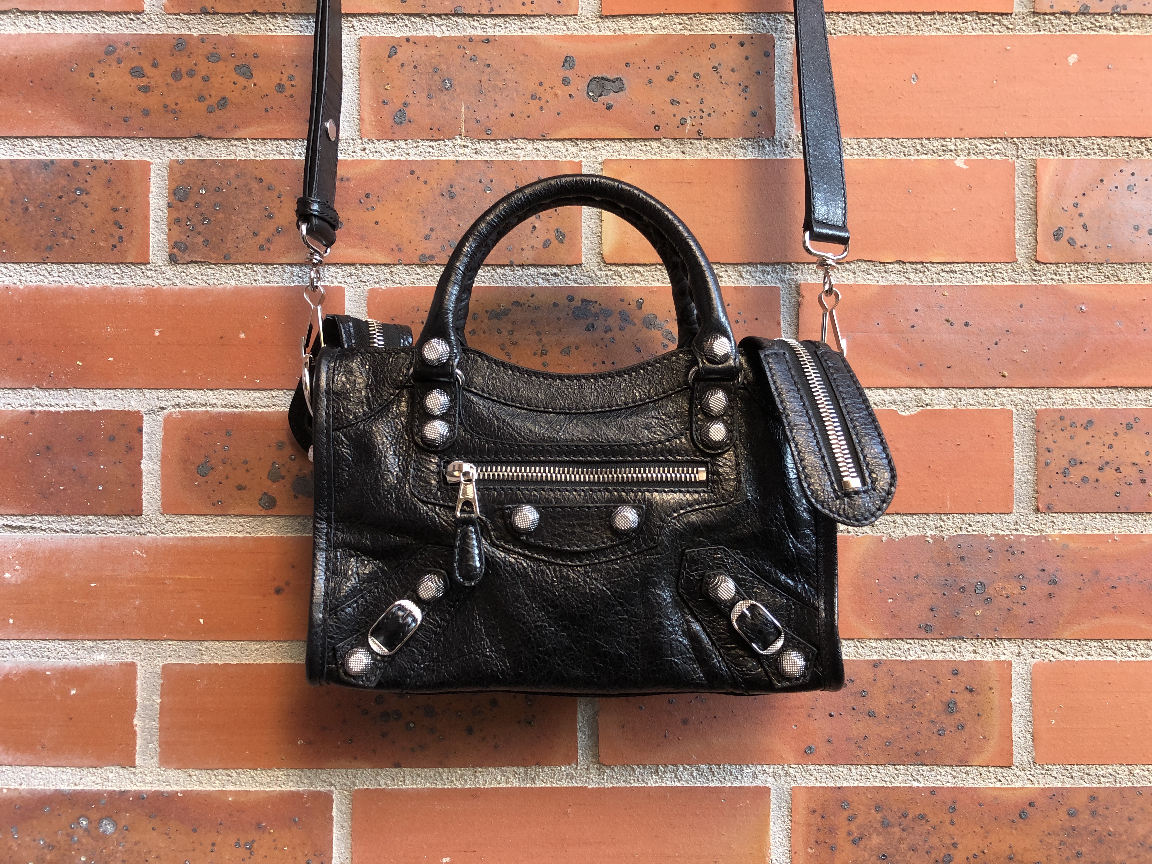 J’adooore mon Classic City mini rouge que j’ai depuis un peu plus d’un an. Je le trouve pratique avec ses 2 anses et sa longue bandoulière (bien qu’assez petit, il est suffisant pour ce que je transporte quotidiennement) et super rock. Mais la couleur rouge ne se marie pas forcément avec tout, c’est pourquoi je ne rêvais que du noir à ajouter à ma collection. Je l’ai donc acheté lui aussi à La Vallée car il est moins cher qu’en magasin et que ce modèle sera discontinué chez Balenciaga.