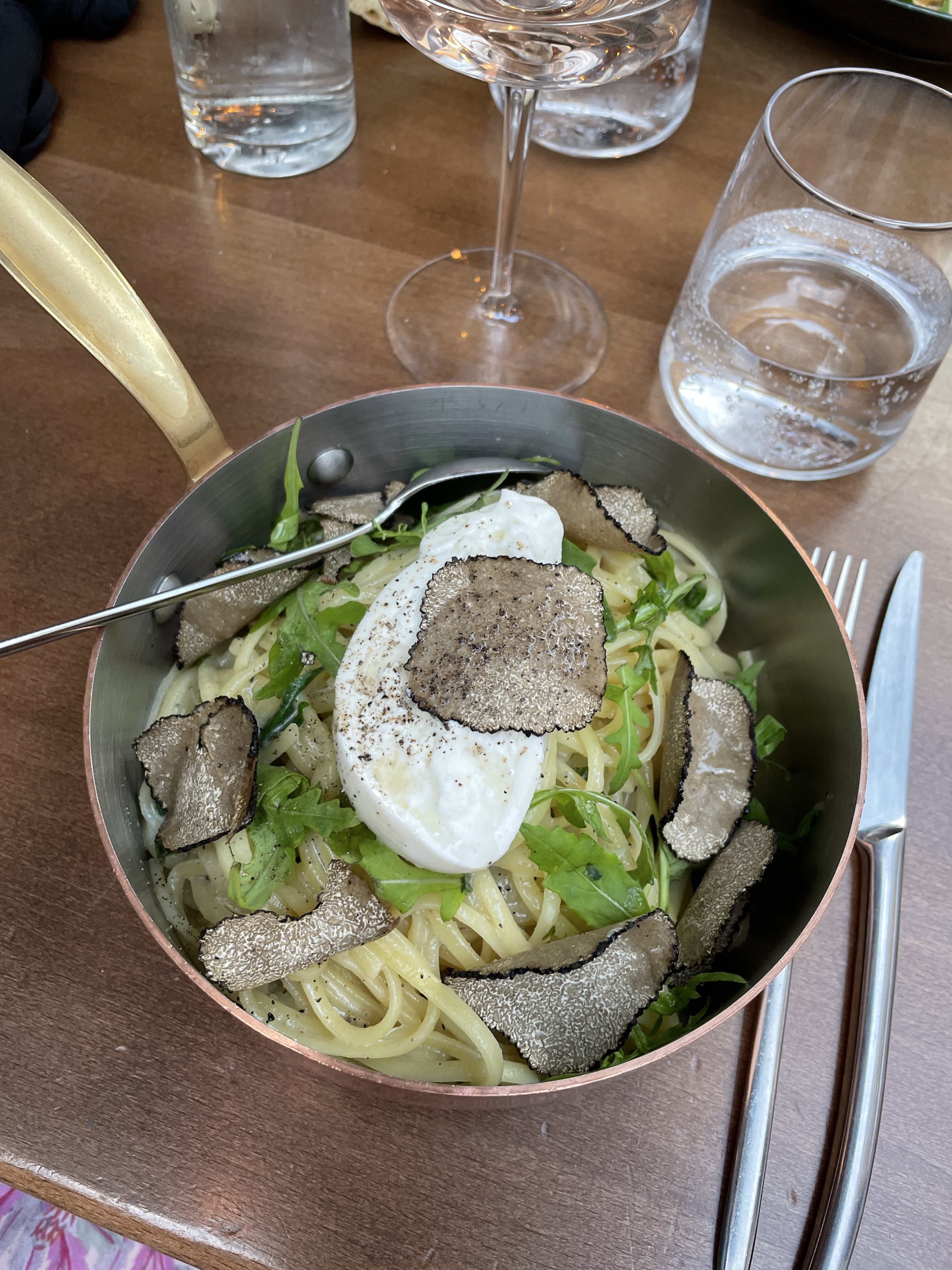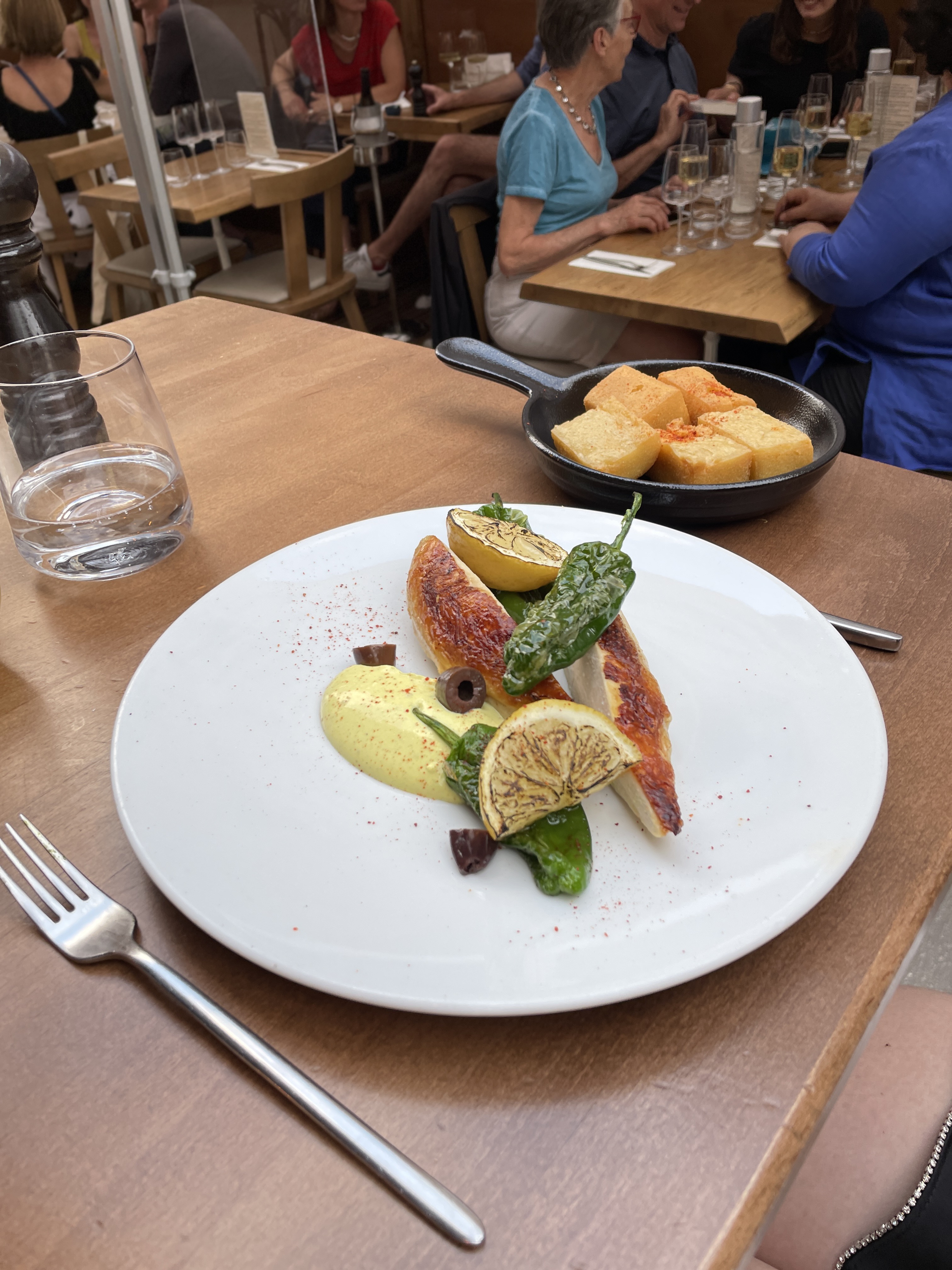 Côté plat les linguine valent le détour avec des belles lamelles de truffe rapées dessus et la burrata crémeuse. Le suprême de volaille rôti m’a aussi beaucoup plu grâce à sa garniture gouteuse : panisses frits , pimientos padrones, olives noires & sauce yahourt.
