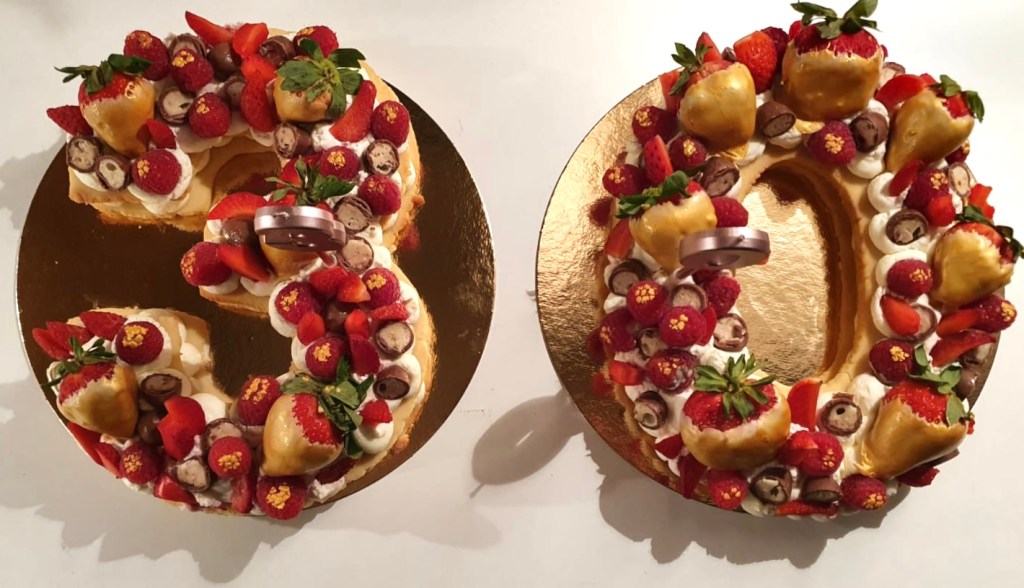 Pour mon anniversaire je voulais absolument un number cake, je trouve ça si joli ! J’ai repensé au compte de Juleliascake, une jeune femme qui fait des pâtisseries. Je lui ai donc demandé de me réaliser un gâteau 30 avec en topping des fruits rouges (dont des fraises trempées dans du chocolat blanc doré) et des Chockobons. C’était franchement aussi beau que bon, ça a remporté un franc succès !