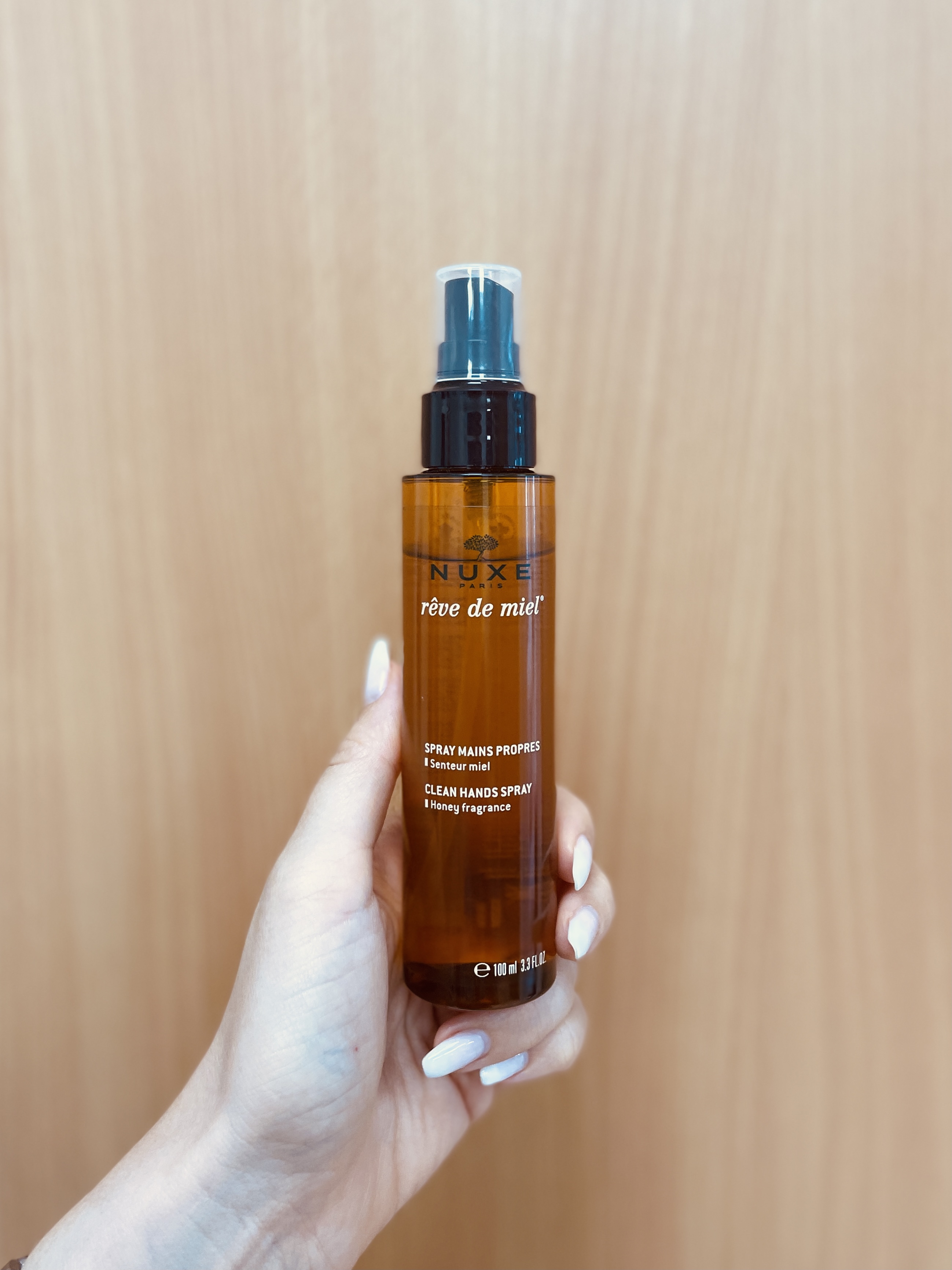 J’ai complètement copié ma collègue Jeanne qui avait son spray Nuxe sur son bureau et que j’utilisais à chacun de mes passages. Son odeur de miel (propre à la marque) est divine et le liquide n’est absolument pas collant, c’est comme si vous pulvérisiez juste de l’eau parfumée sur vos mains. Et évidemment, il a un pouvoir désinfectant, qu’on apprécie beaucoup en ce moment. (NB : je l’ai trouvé à la parapharmacie Monoprix)