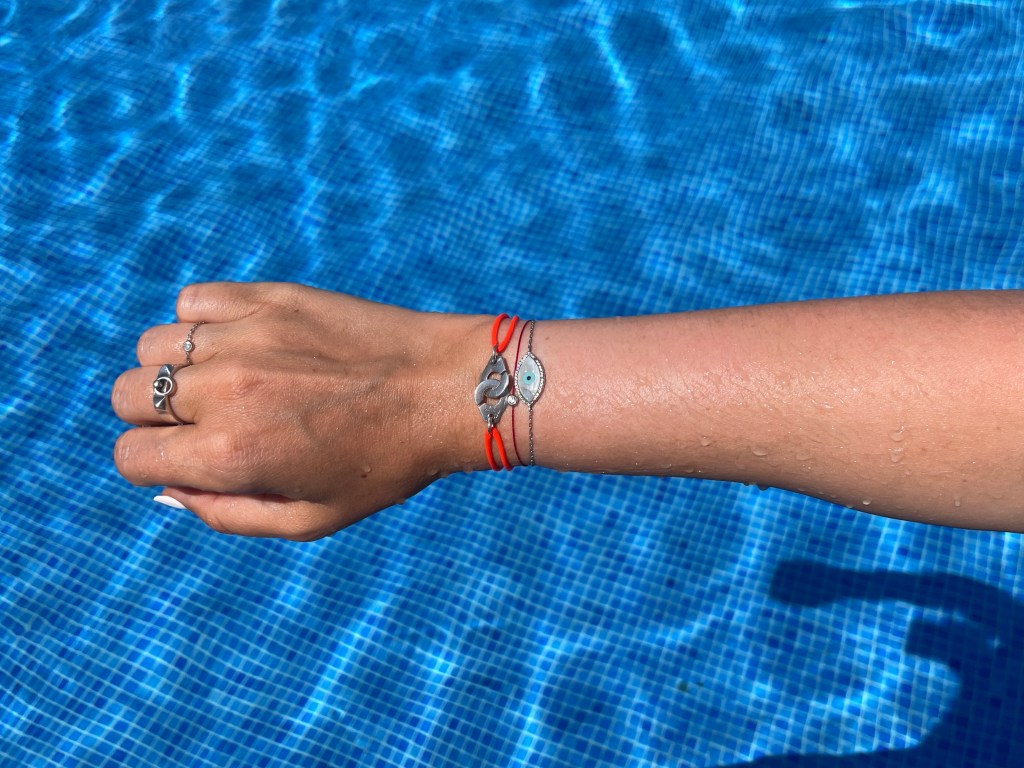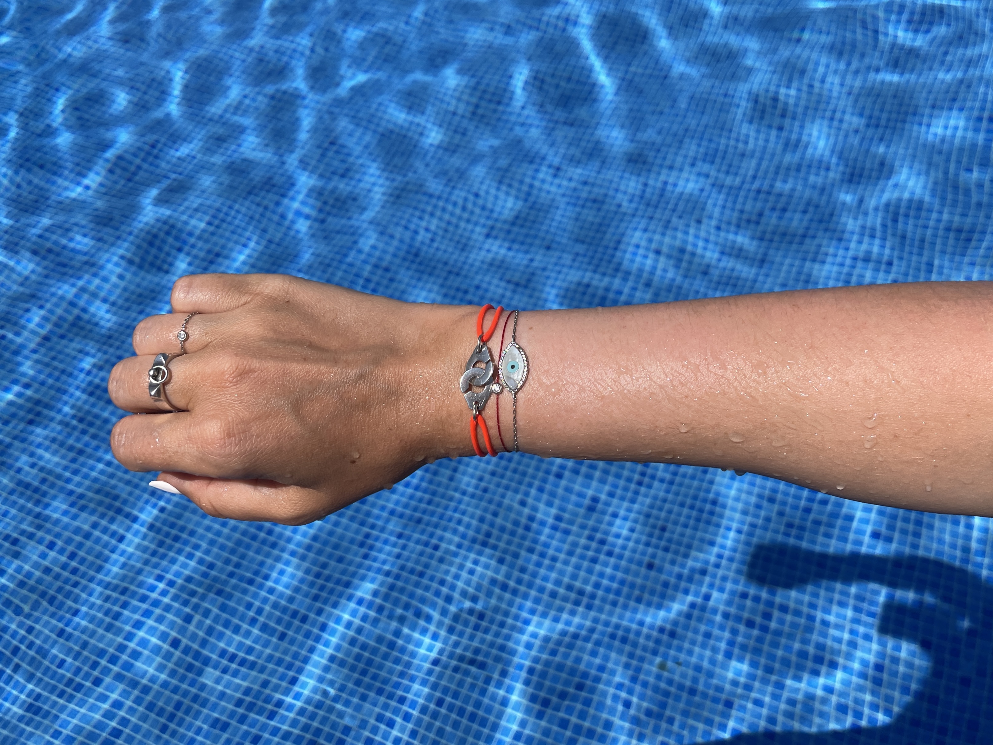 Depuis 15 ans je porte mes menottes Dinh Van sur un cordon noir, qui va avec tout. Mais cet été j’avais envie de changement et de quelque chose de plus original pour l’été. J’ai opté pour le cordon rose fluo, qui n’est absolument pas discret mais qui sera du plus bel effet sur peau bronzée. Et ce changement me donne l’impression d’avoir un nouveau bijou !