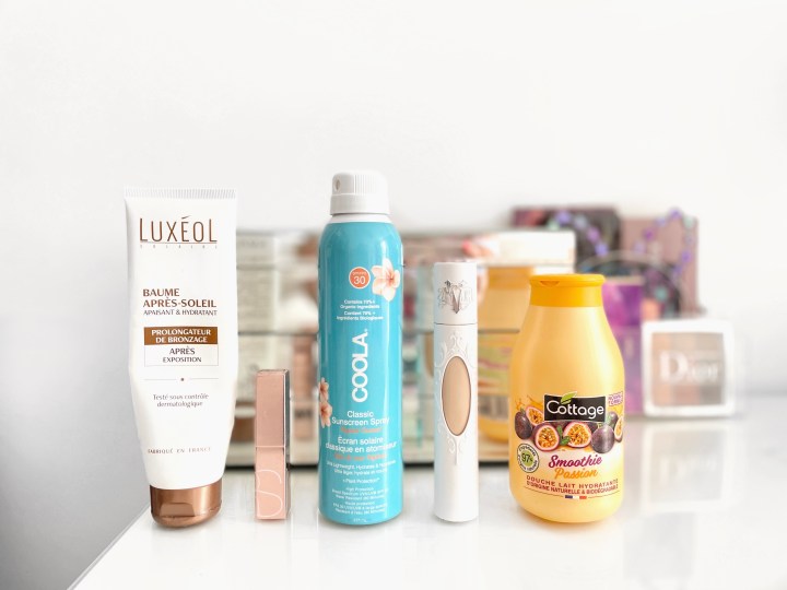 Cet été j’ai fini un écran solaire en atomiseur de la marque Coola, doté d’un SPF30. Heureusement que je n’ai pas emporté que ce solaire pour 2 semaines, car il s’est fini tellement vite qu’il n’aurait pas suffit (c’est ce que je reproche souvent aux sprays, la déperdition de produit). Je trouve que l’odeur d’alcool était assez prépondérante sur le parfum Tropical Coconut du produit (qui sentait pourtant délicieusement la Pina Colada), ce qui m’a un peu dérangée car alcool + soleil = tâches sur la peau. Mais j’imagine qu’il y a une bonne explication à cela car cette crème Coola est quand même composée à +70% d’ingrédients d’origine naturelle ! Sinon, j’ai beaucoup aimé le spray qui s’utilise à 360° (on peut même crémer son dos soi-même) et la résistance à l’eau pendant 80min. Mais je ne pense pas le racheter pour une question de rentabilité.