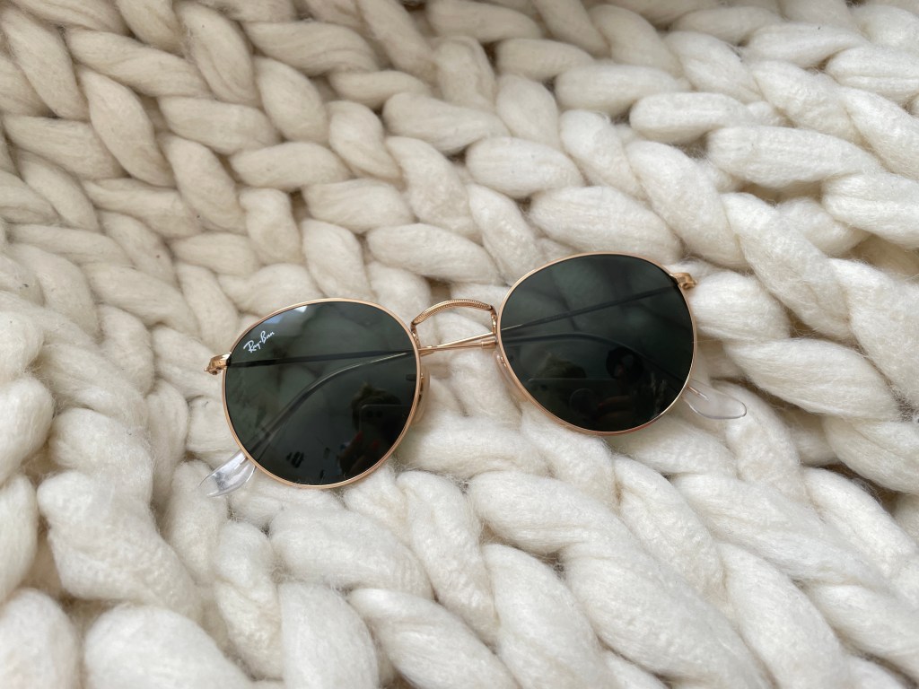 Je me suis aussi rendue compte que bronzer avec mes 2 paires de Rayban effet miroir n’était pas l’idée de l’année. Tout simplement car le soleil se réverbère dessus et vous avez beau mettre la meilleure crème visage qui soit, vous finirez avec le nez rouge. J’ai donc choisi le même modèle (Rayban Round Lense) avec monture dorée et des verres noirs qui protègent très bien mes yeux clairs du soleil. Pour le rapport qualité/prix, je ne peux que vous conseiller Rayban, ce sont des lunettes que vous pouvez trouver à moins de 100€ et garder 10 ans !