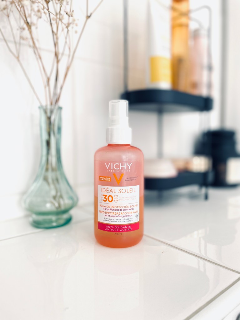 Après avoir passé mes premiers jours de vacances à cumuler coups de soleil et allergie (malgré la prise de compléments solaires, l’application de crème SPF30 régulièrement et des précédentes expositions), j’ai décidé de racheter l’Eau de Protection Solaire Vichy que j’avais adorée les étés précédents. Elle a toutes les qualités recherchées dans un solaire : translucide, non grasse/collante malgré la biphasé, facile à appliquer, très bonne protection même qu’en 30, belle contenance. Et à l’avenir je m’assurerai de toujours en emmener un flacon avec moi au soleil.
