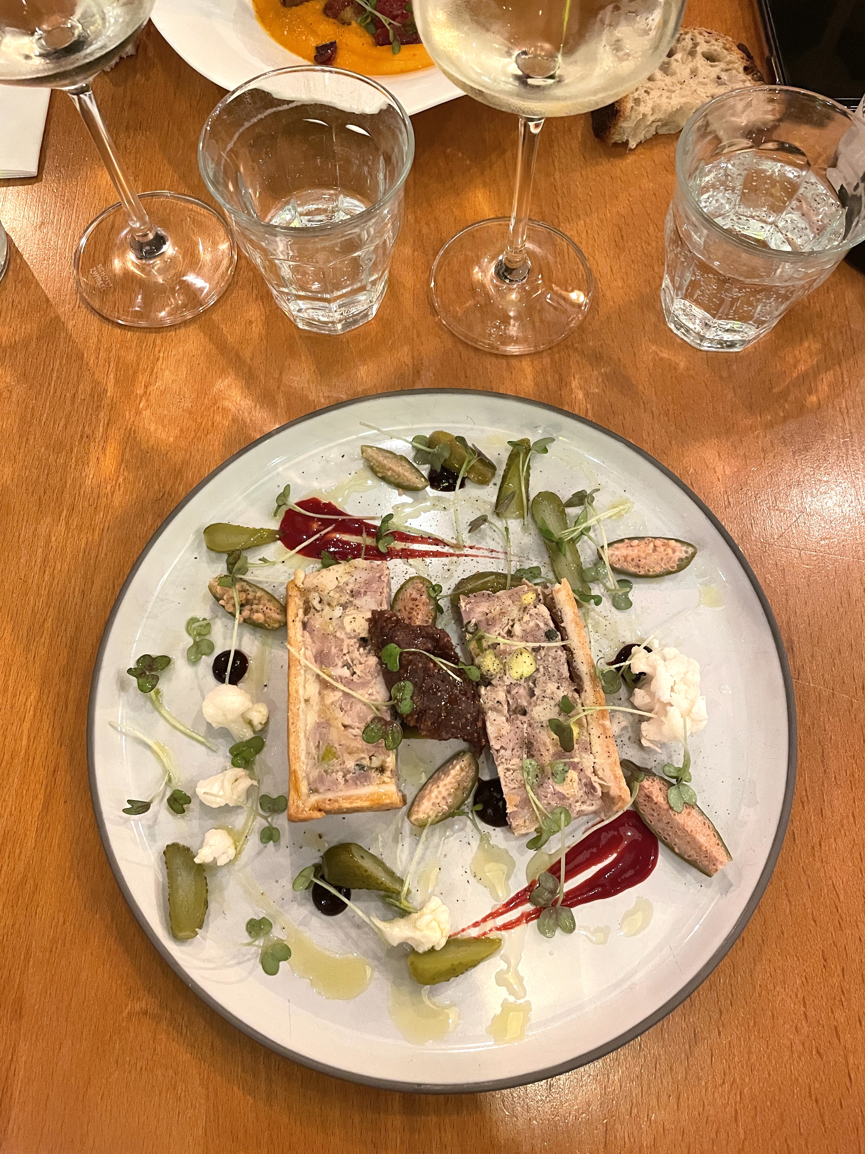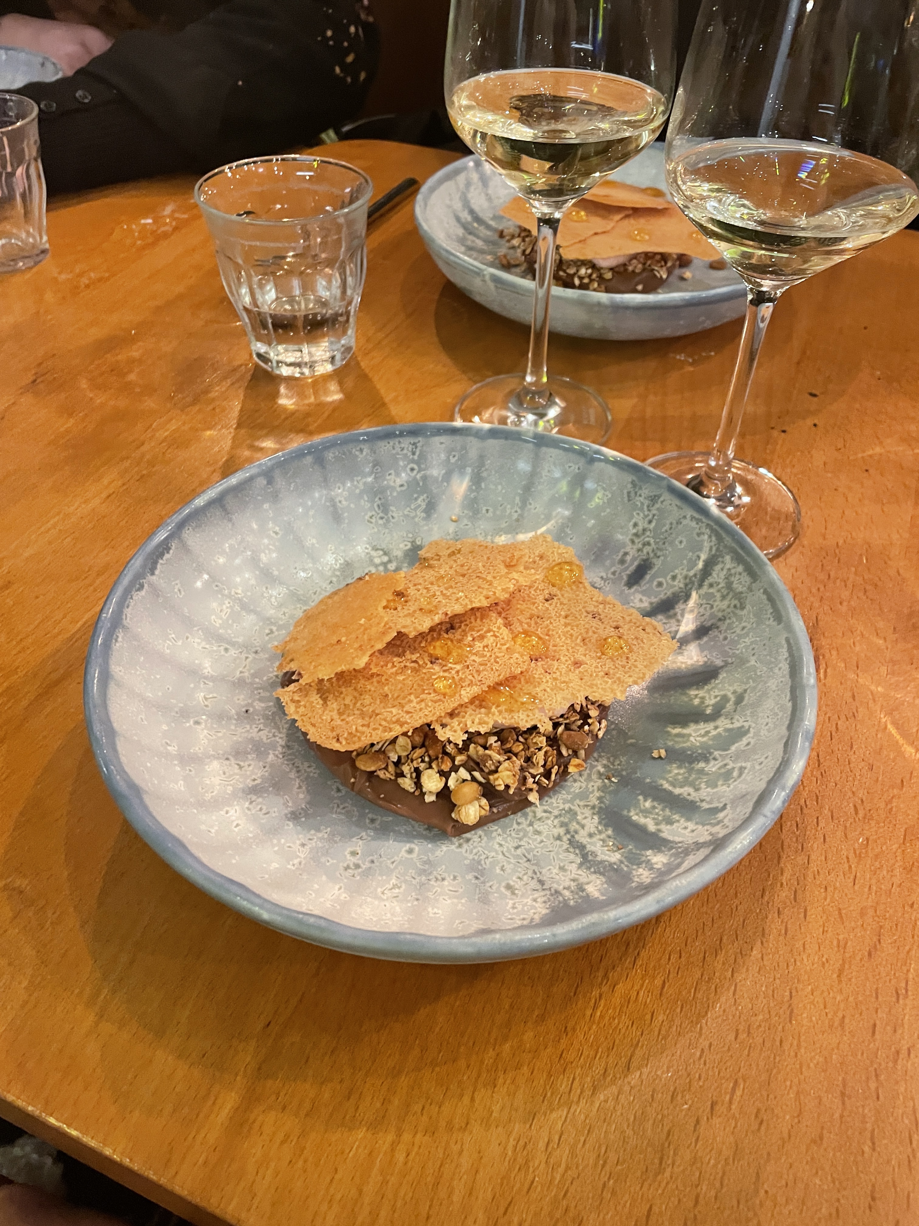 Lors de mon dernier anniversaire j’avais diné chez Marso & Co, l’une des adresses du chef Tomy Gousset, et j’avais été conquise par ses recettes. La semaine dernière j’ai découvert son adresse rue Monge, Hugo & Co, et j’ai à nouveau été séduite. La carte avait changé le jour-même (un coup dur pour moi qui choisis toujours mon repas en amont ahah) mais ça ne nous a pas empêché de nous régaler, avec une formule E/P/D à 39€. Mention spéciale pour l’incroyable pâté en croute (grande fan) et le dessert au chocolat, super léger même quand on n’a plus faim.