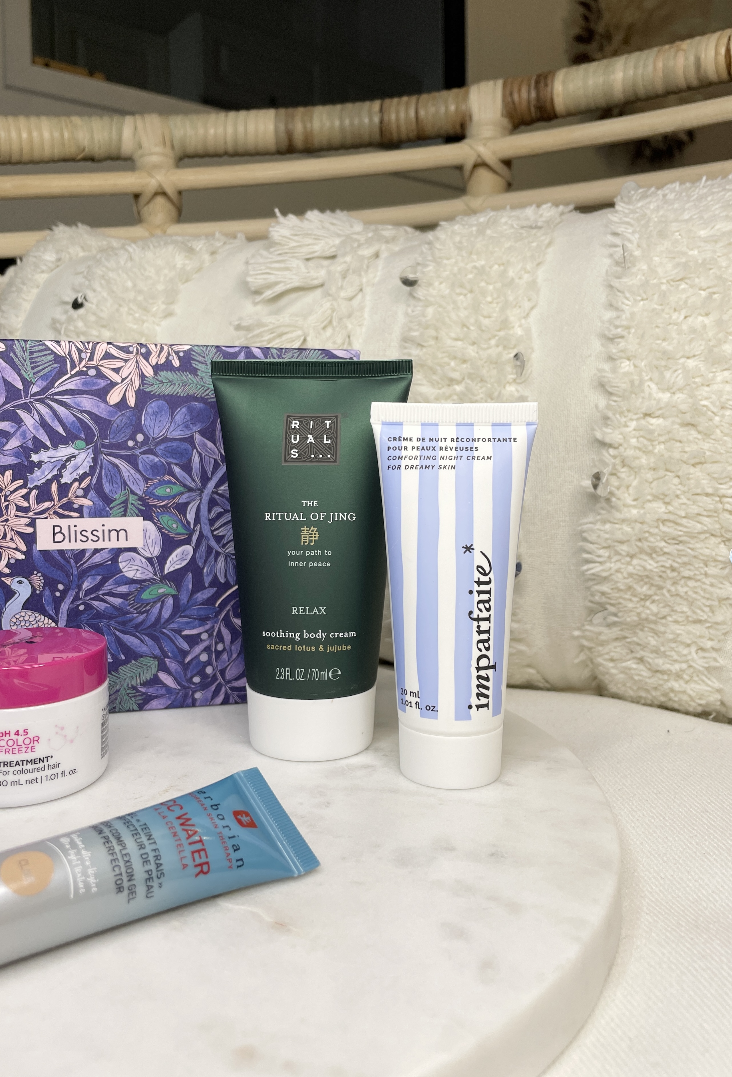 Dans toutes les Blissim box de novembre se trouve un baume corps RITUALS (divers parfums : The Ritual of Jing/Sakura/Ayurveda…) de 70ml et une Crème de nuit Réconfortante de l’IMPARFAITE (marque que je n’ai vue jusqu’à maintenant que dans des box beauté), vegan et composée à 95% d’ingrédients d’origine naturelle.
