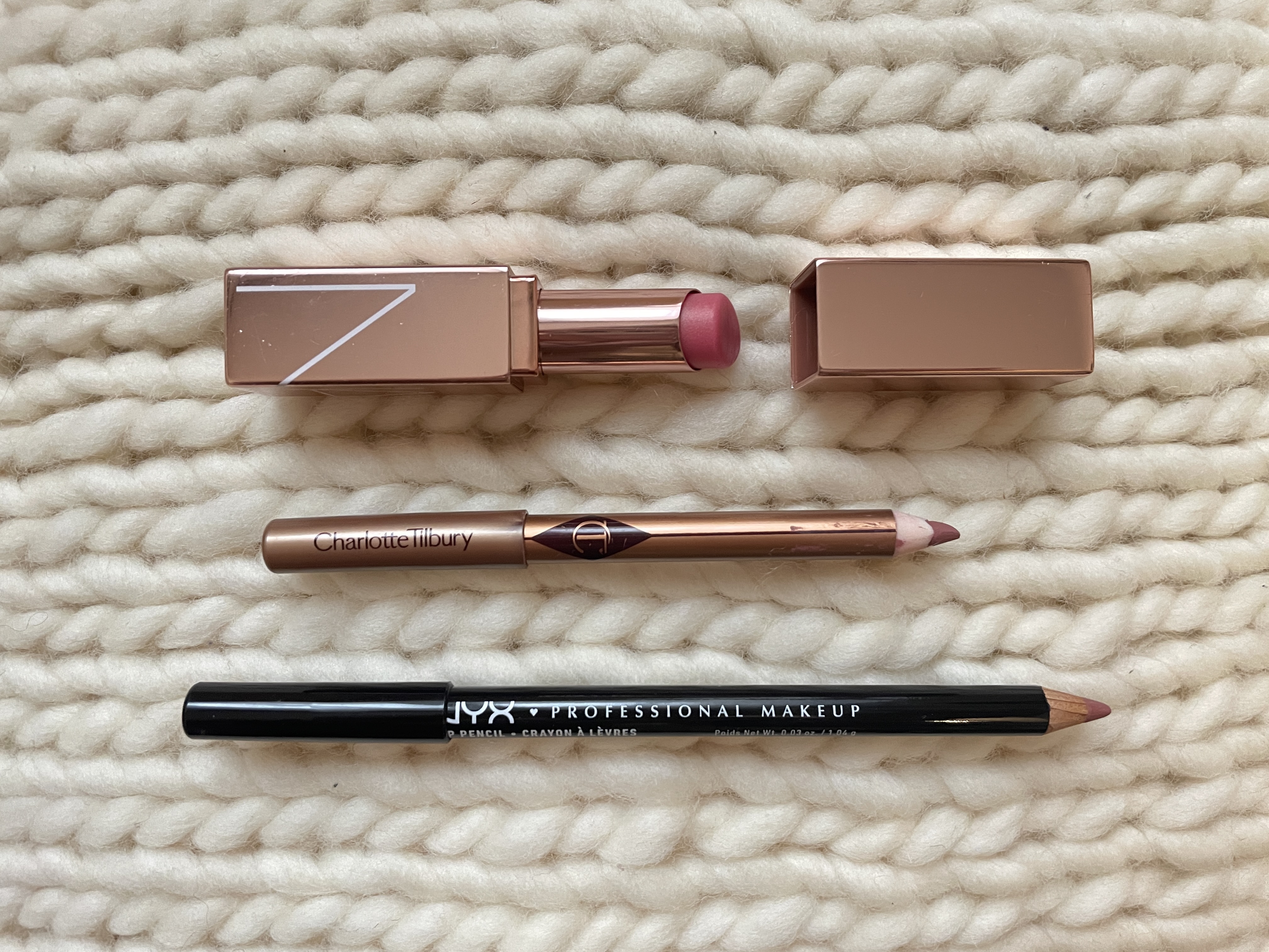 Ce mois-ci j’ai énormément mis ces deux produits pour maquiller mes lèvres : le crayon Pillow Talk de Charlotte Tilbury (le parfait dupe existe chez NYX pour bien moins cher : Peekaboo Neutral) que j’utilise pour tracer le contour de mes lèvres et je les remplis ensuite avec un baume à lèvres Afterglow de NARS en teinte Orgasm. Mais j’espère ne plus avoir à trop le faire une fois que j’aurais fini mes retouches de Candy Lips.
