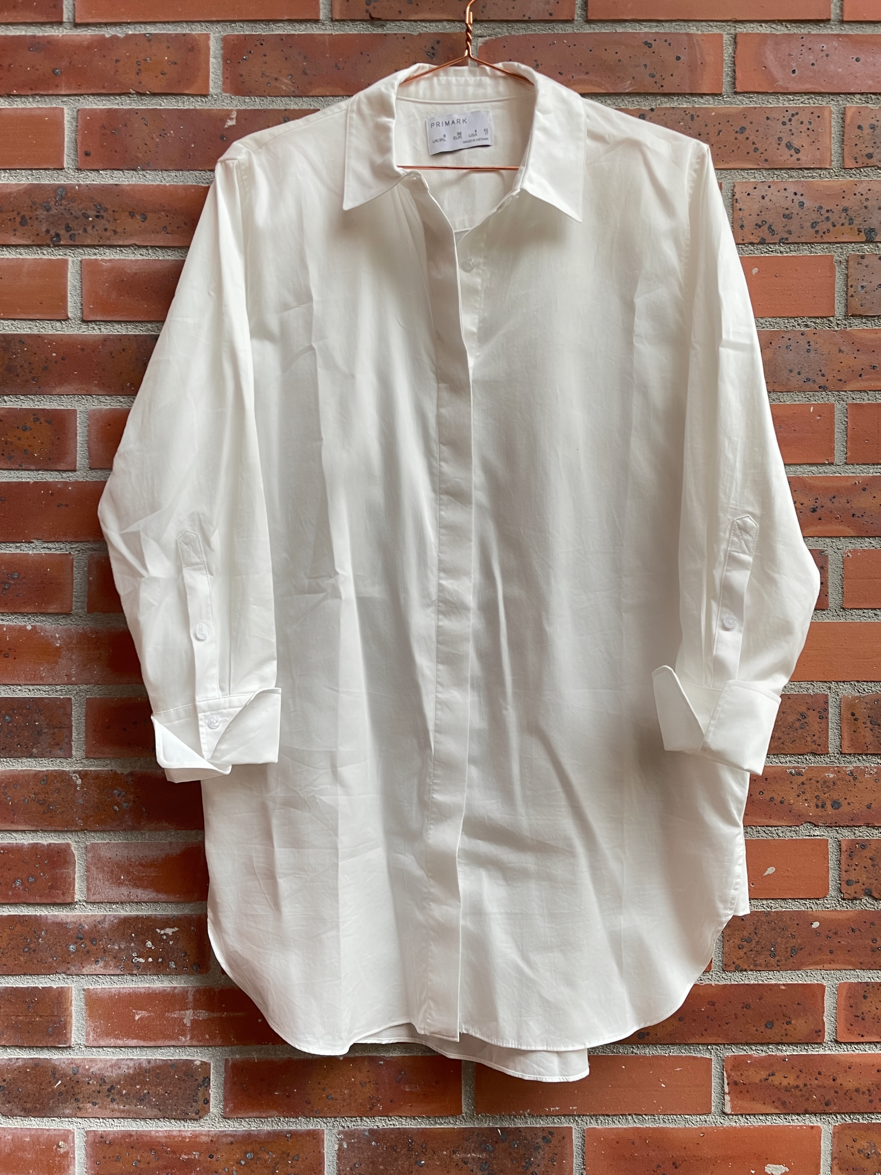 Primark a récemment lancé la collection capsule The Primark Edit, des basiques réalisés dans de très jolies matières (cachemire mélangé, laine, cuir, plaqué or…), à prix accessible. Et j’y ai trouvé mon bonheur : LA robe-chemise blanche parfaite que je cherchais depuis l’hiver dernier. Elle n’est pas trop courte, pas du tout transparente, la popeline de coton se tient bien et évite qu’elle ne se froisse trop vite… Maintenant je veux mettre la main sur le t-shirt blanc en 100% coton de la même collection.