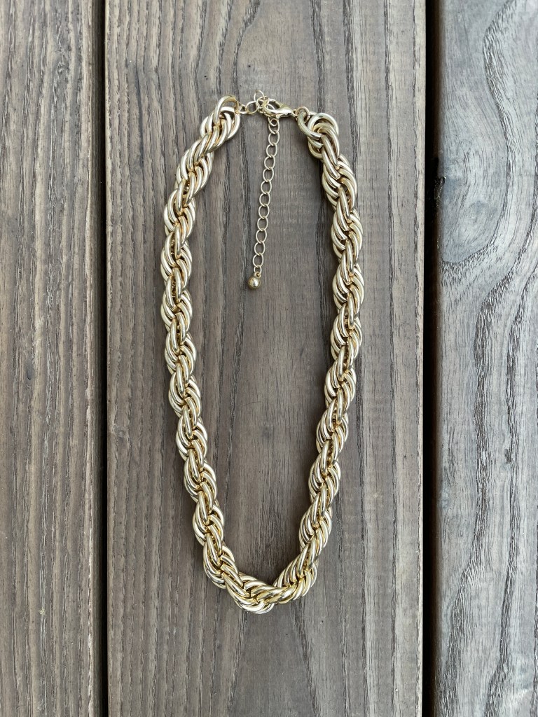 J’ai shoppé ce gros collier dans le seul et unique but de le porter sur des sweats/hoodies un peu oversize. Ça permet d’apporter une touche de féminité à la tenue et casser le côté trop sportswear.