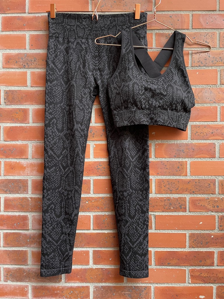 Primark propose aussi toute une gamme de vêtements de sport très très cool. Comme je n’avais plus de leggings noir, j’ai acheté celui-ci avec la brassière assortie, en imprimé serpent noir et gris. Il est sans couture donc super agréable à porter et la brassière a un très bon maintien je trouve !