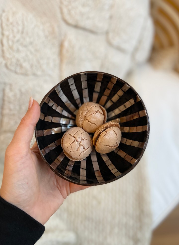 Je suis très fan de ces bols en noix de coco dans lesquels on incruste des morceaux de nacre pour former un joli motif. Et ma maman m’a donc offert celui-ci que nous avions acheté ensemble lors de notre journée Marché de Noël à Metz. Pas du tout typique, mais ça reste un souvenir et il est vraiment très joli.