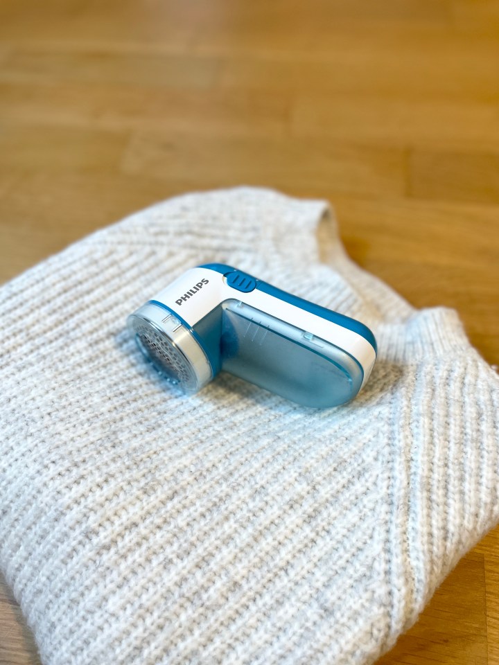 Tu sais que tu as 30 ans quand tu demandes ce genre de cadeaux de ménagère… Mais que voulez-vous, j’en avais marre de voir des bouloches sur 90% de mes pulls en maille (et sur certains manteaux) et il n’y a pas plus pratique que ce genre de petit rasoir électrique pour en venir à bout.