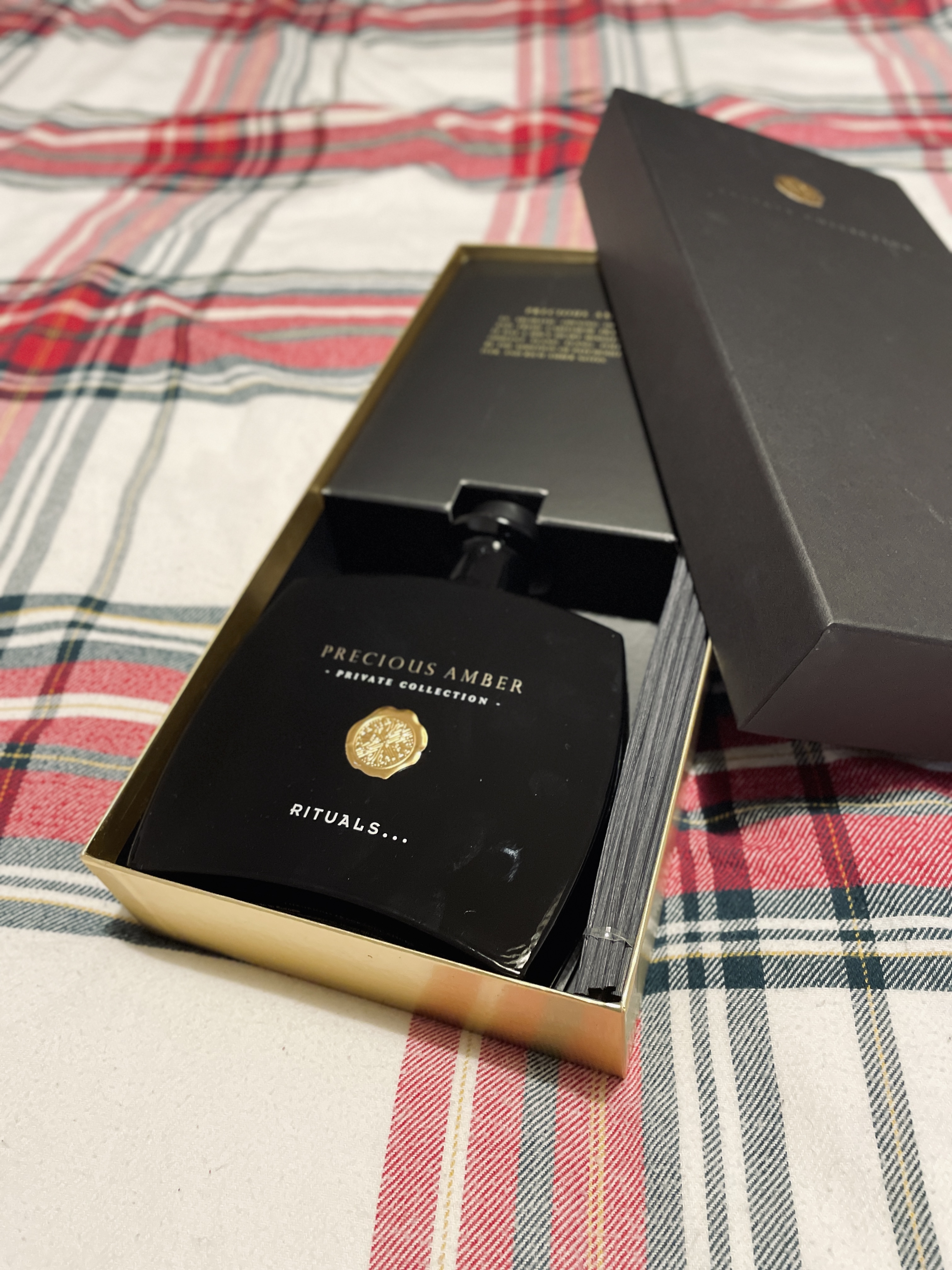 Parmi mes cadeaux il y avait aussi ce de parfum d’intérieur Rituals. Il s’agit de Black Amber, mon odeur préférée de la Private Collection. J’ai vraiment hâte que le coffrage de mes toilettes soit refait pour pouvoir l’y installer et qu’il diffuse son odeur dans toute ma salle de bain (raison pour laquelle il est tristement fermé sur cette photo).